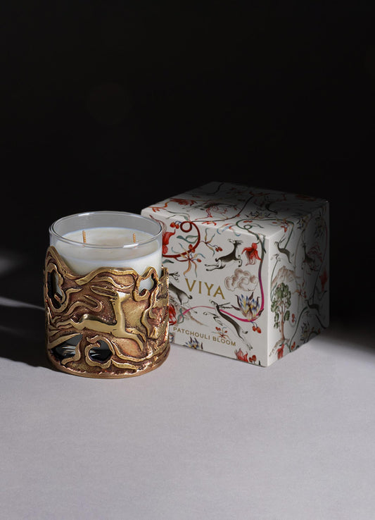 Enhance your ambiance with Viya's luxury scented candles, featuring designer aromatherapy scents and ornate brass accents for a sophisticated touch.