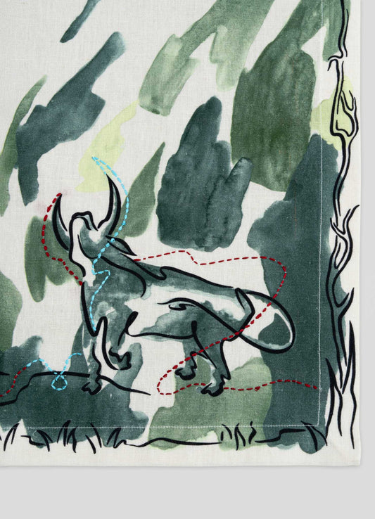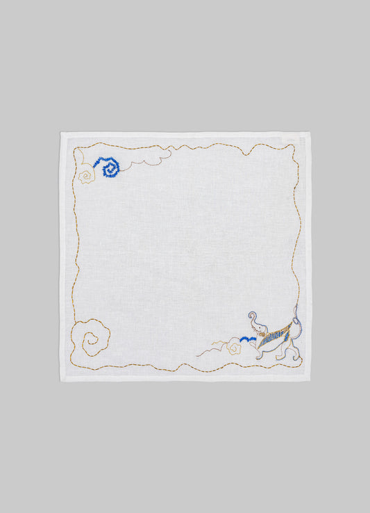 Blackbuck Dreams Hand Embroidered White & Gold Napkin