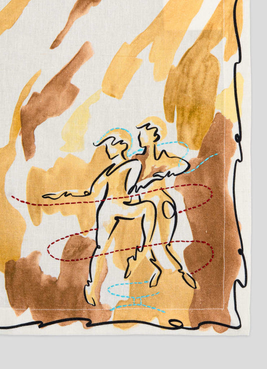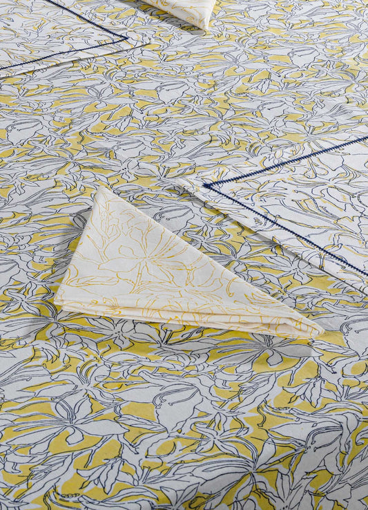 Gemini Printed & Hand Embroidered Yellow Napkin