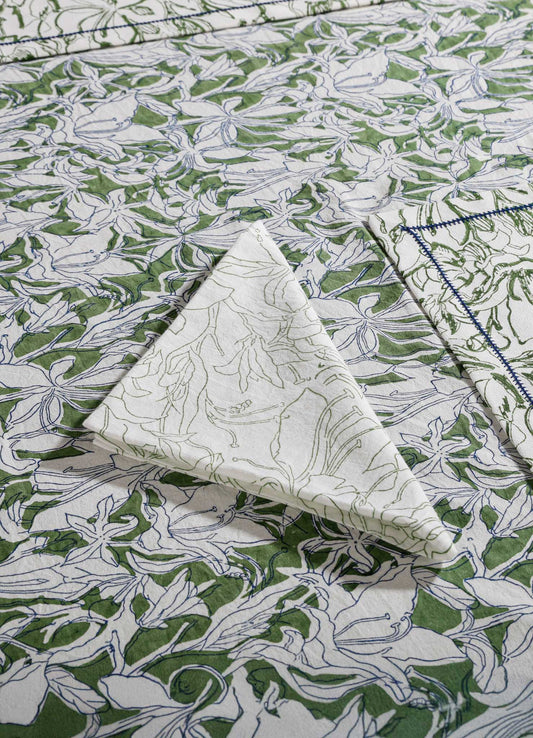 Explore luxury cotton napkins by Viya. Elevate your dining experience with hand embroidered, block printed table linen.