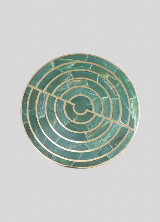Viya's luxury side tables showcase unique designs in brass and semi precious inlay, ideal as accent or bedside pieces for any space.
