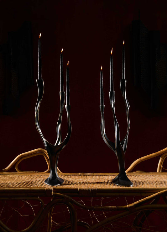Discover Viya's designer table decor collection featuring brass candle holders, decorative trays, and sculptural pieces, handmade in luxurious finishes.