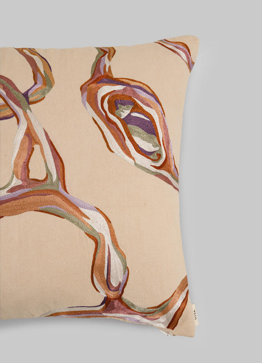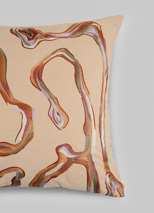 Tutti Frutti Hand Embroidered Salmon Pink Cushion Cover 18"x18"