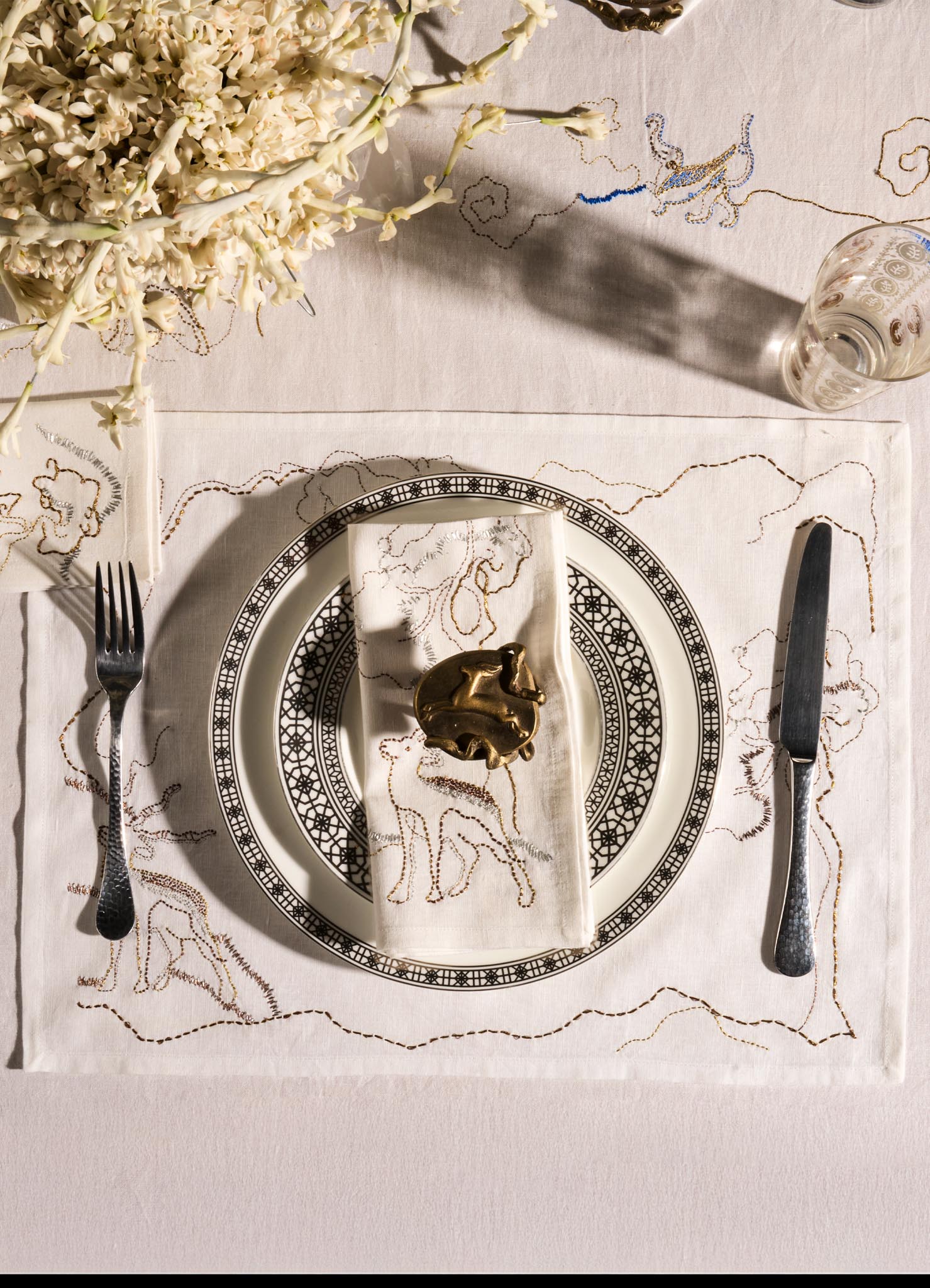 Blackbuck Dreams Hand Embroidered White & Gold Placemat