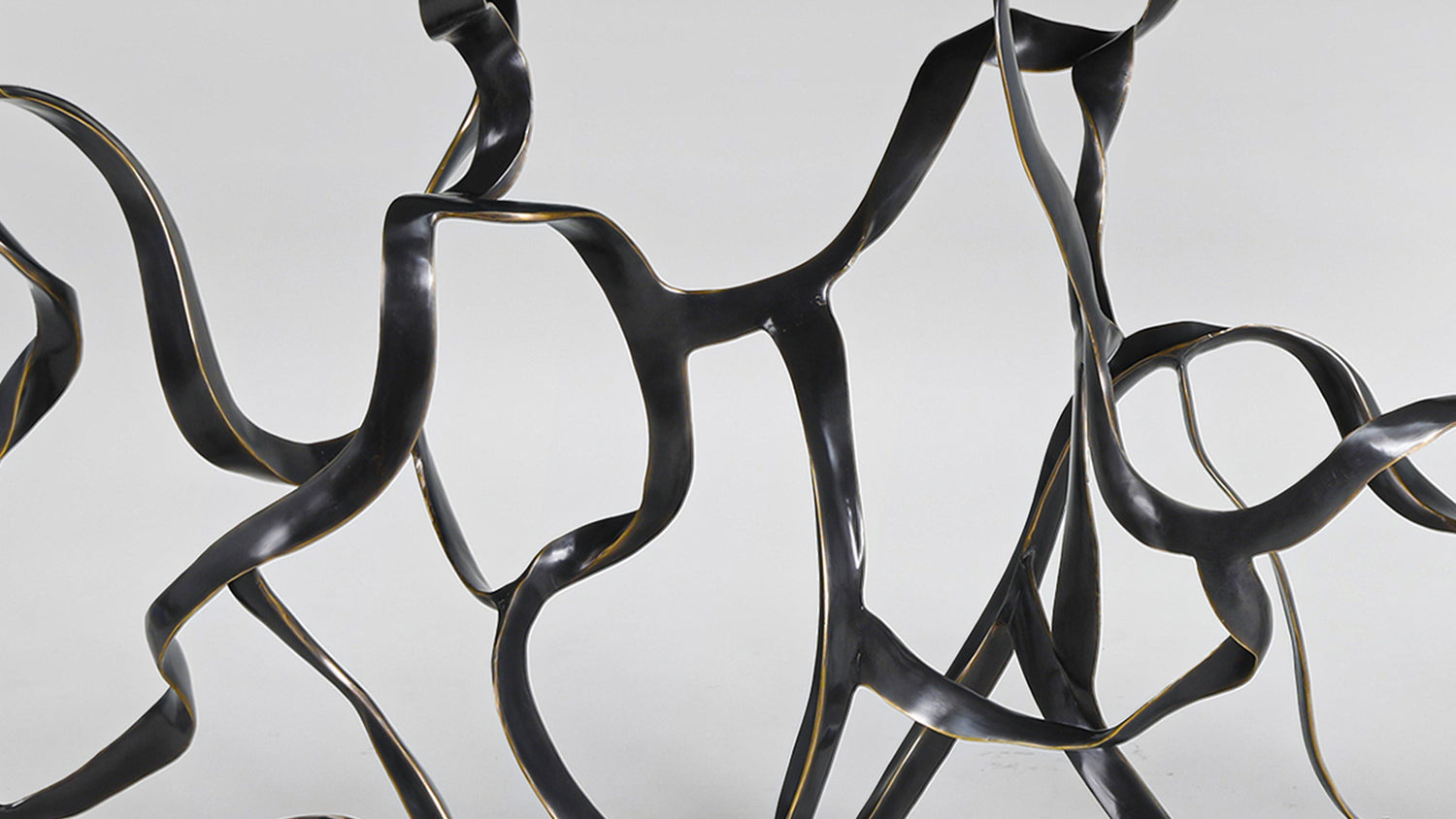 The Blackbuck is an animal revered across cultures, and in India symbolic of purity and the divine. Our collection of cast brass objects manifest some of these traits; the dark graceful twisting forms, inspired by its antlers, rise skyward. Through their form, they capture the delicate balance of earthly virtue and celestial yearning.