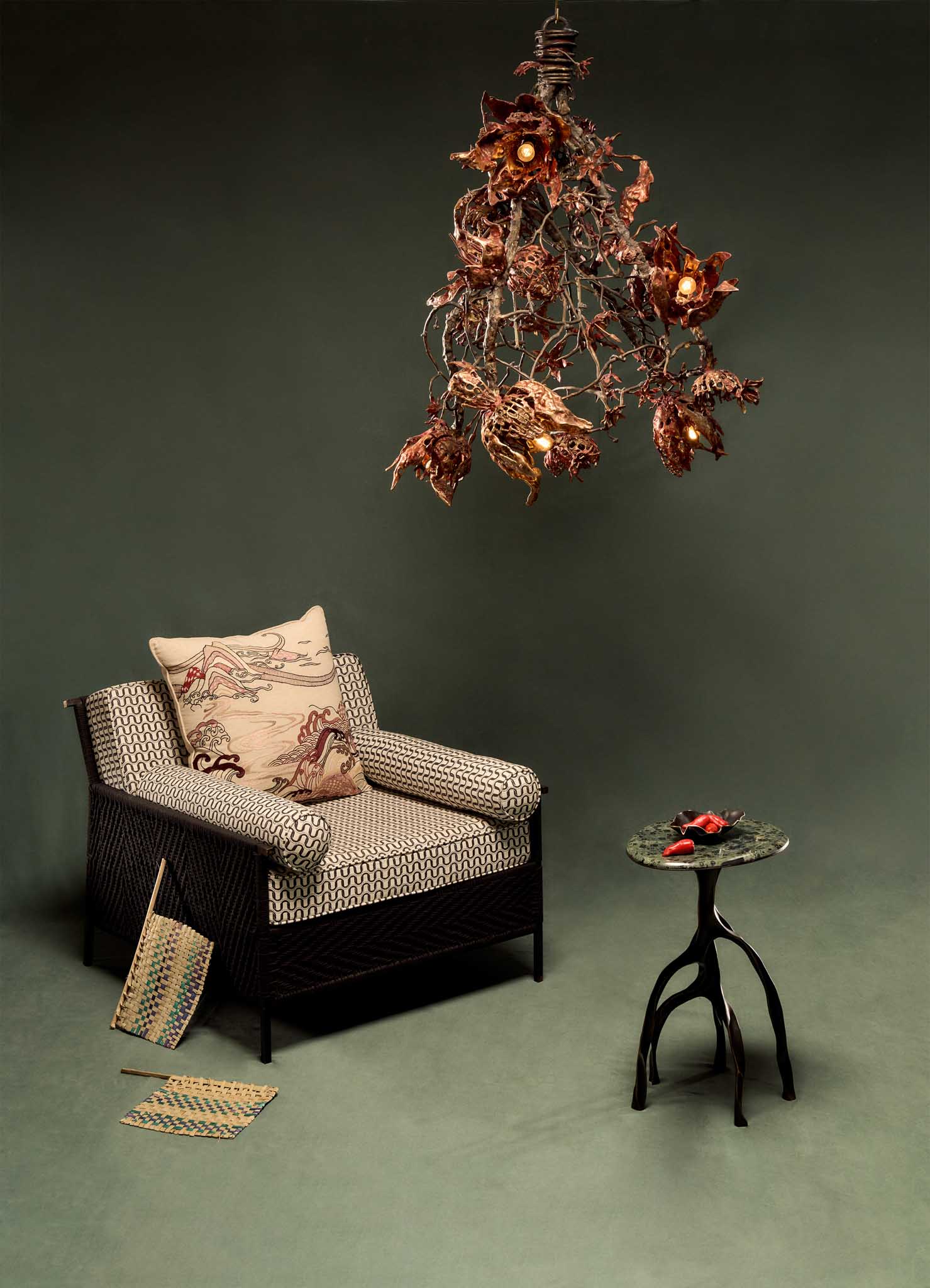 Immersed in the heritage of India's ancient artistry, the humble rope transports us to the heart of craftsmanship. Drawing inspiration from the ubiquitous Charpoy, a traditional Indian cot, this collection features furniture intricately intertwined using traditional knotting techniques passed down through generations. The use of organic fibres like jute and coir echoes the sustainability deeply ingrained in India's cultural ethos, and its delicate strands, fortified through interlacing, remind us that we are all stronger together.