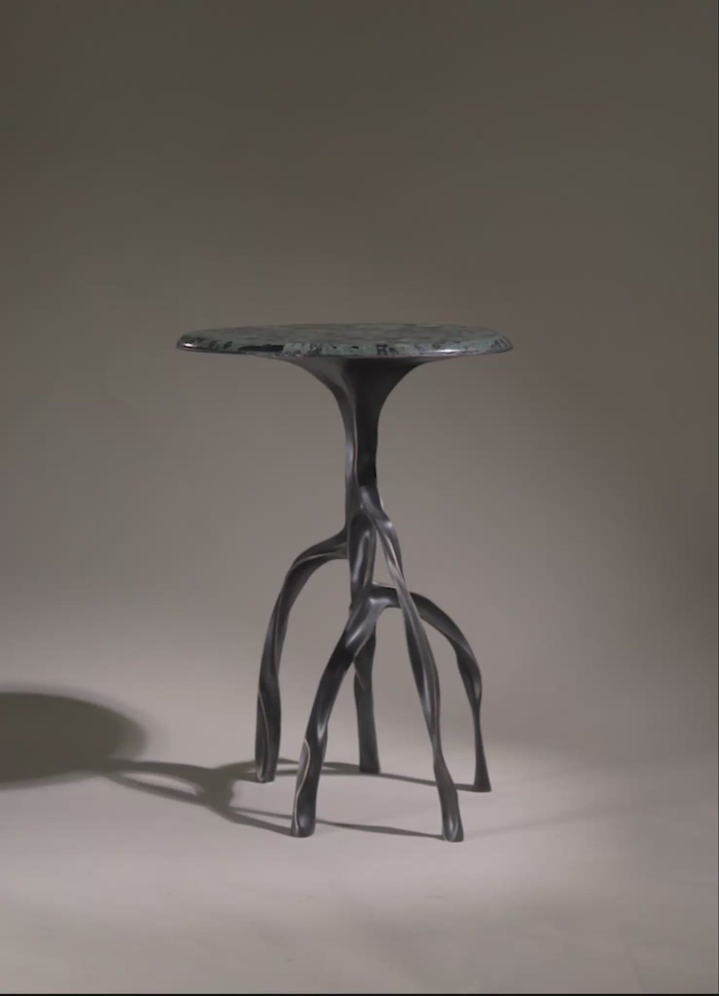 Side Table in brass with semi precious overlay top. Handmade in India.