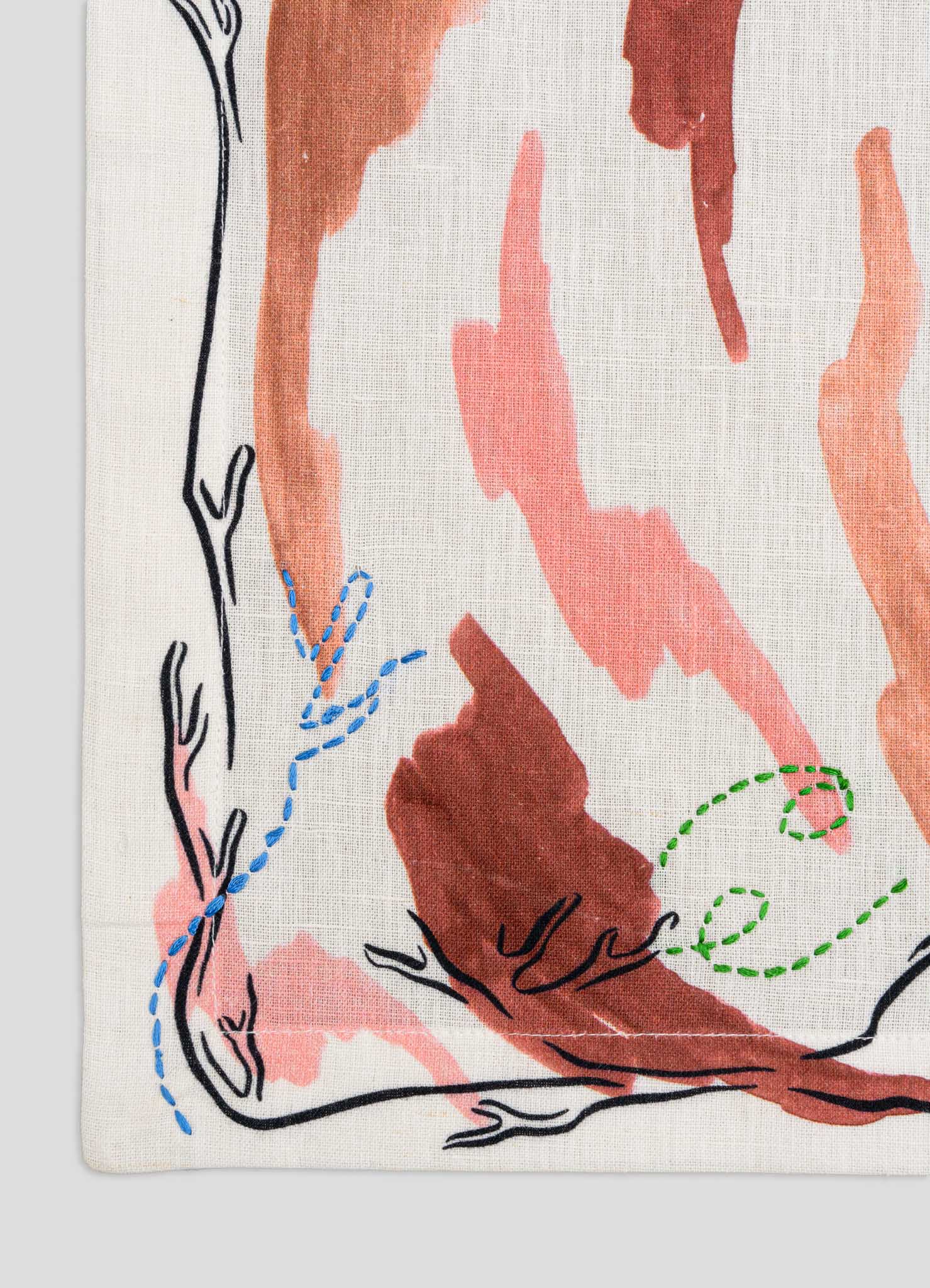 Printed & hand embroidered placemat in cotton linen. Handmade in India.