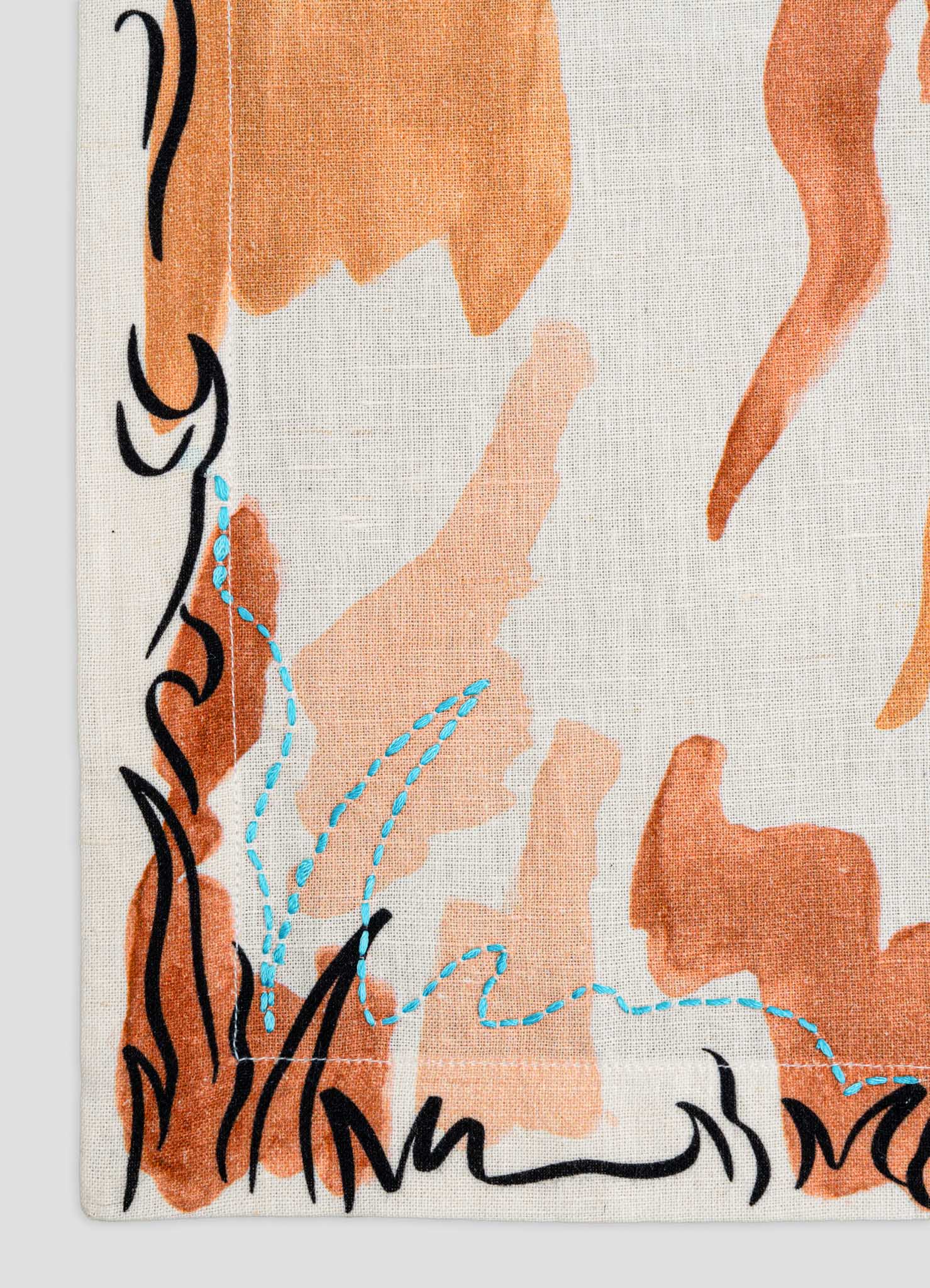 Printed & hand embroidered placemat in cotton linen. Handmade in India.