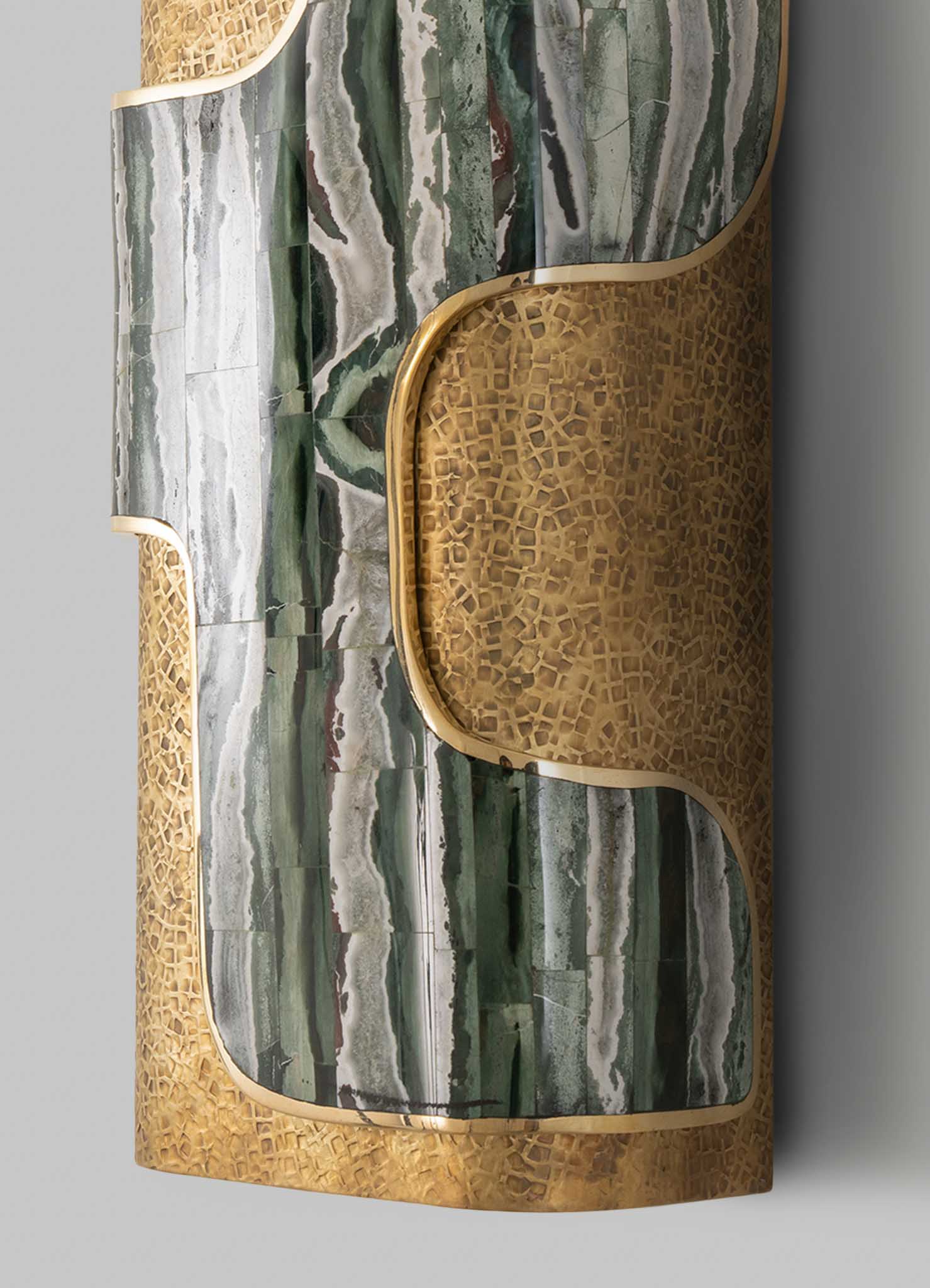 Wall Sconce in brass with semi precious inserts. Handmade in India.