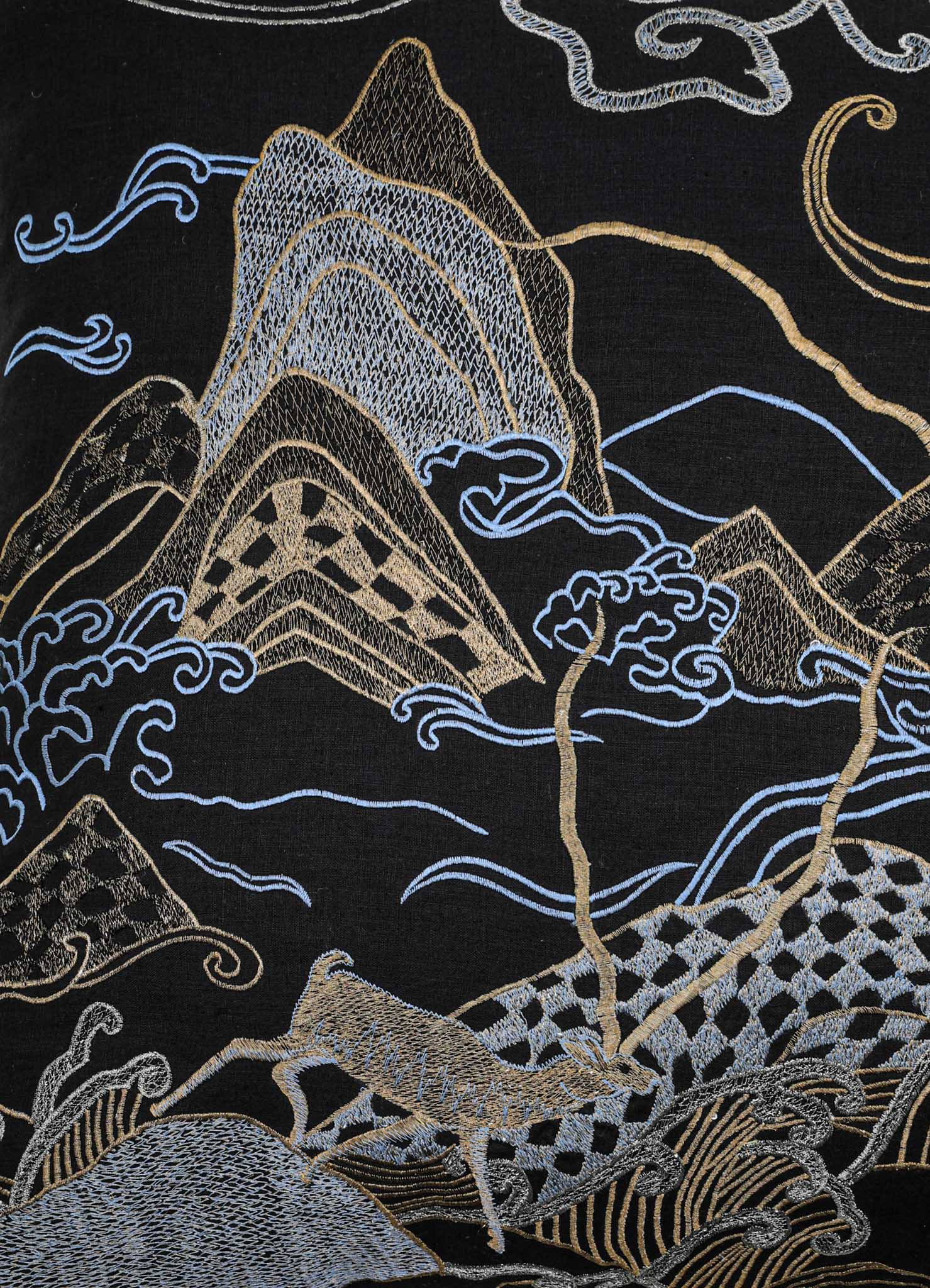 Dreamscape Blackbuck Black & Gold Embroidered Linen Cushion Cover 24"x24"