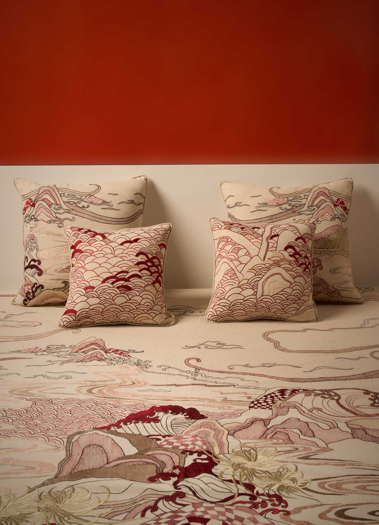 Dreamscape Red Embroidered Cushion Cover A 24"x24"