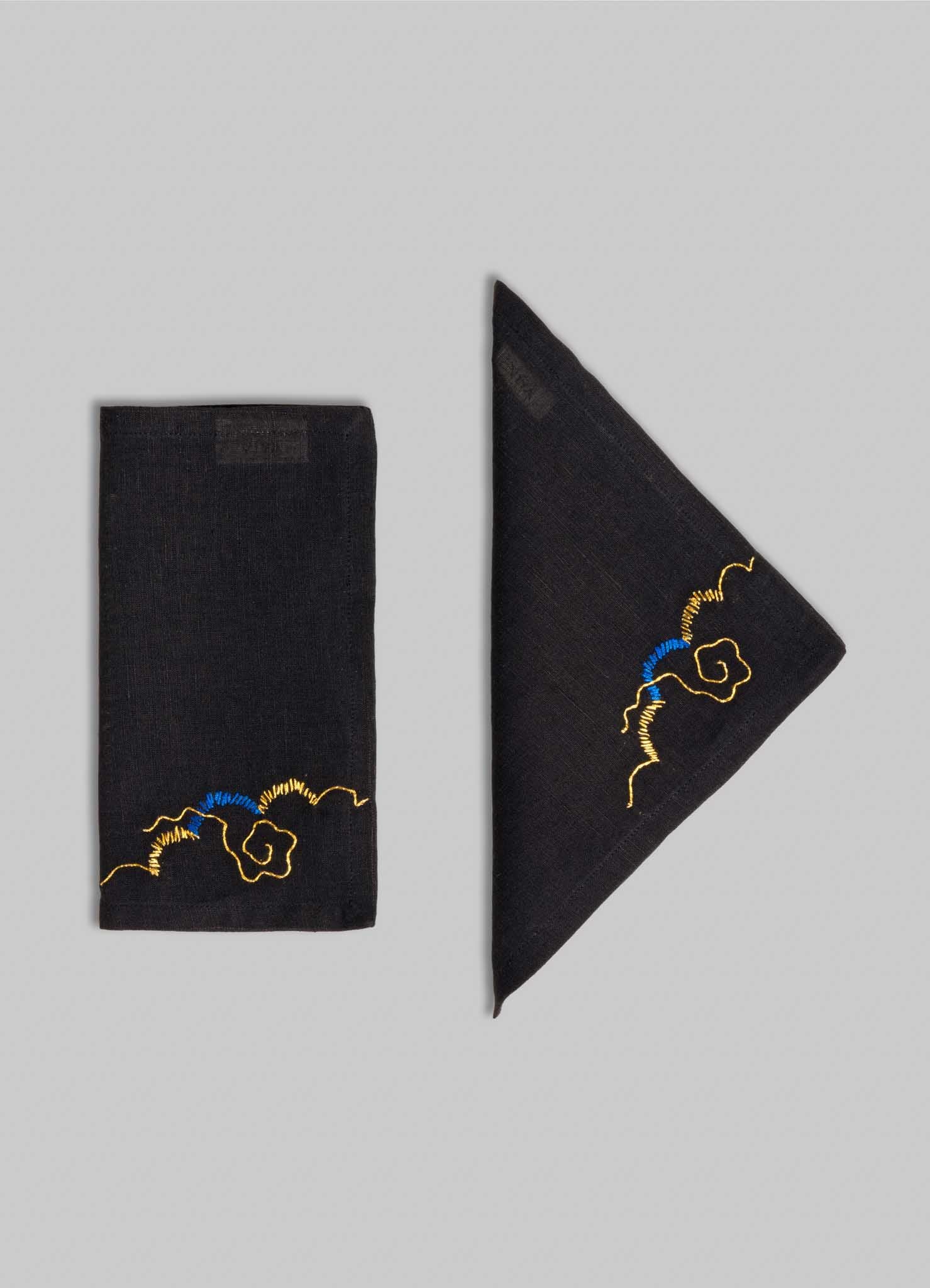 Gajasimha Hand Embroidered Black & Gold Cocktail Napkins