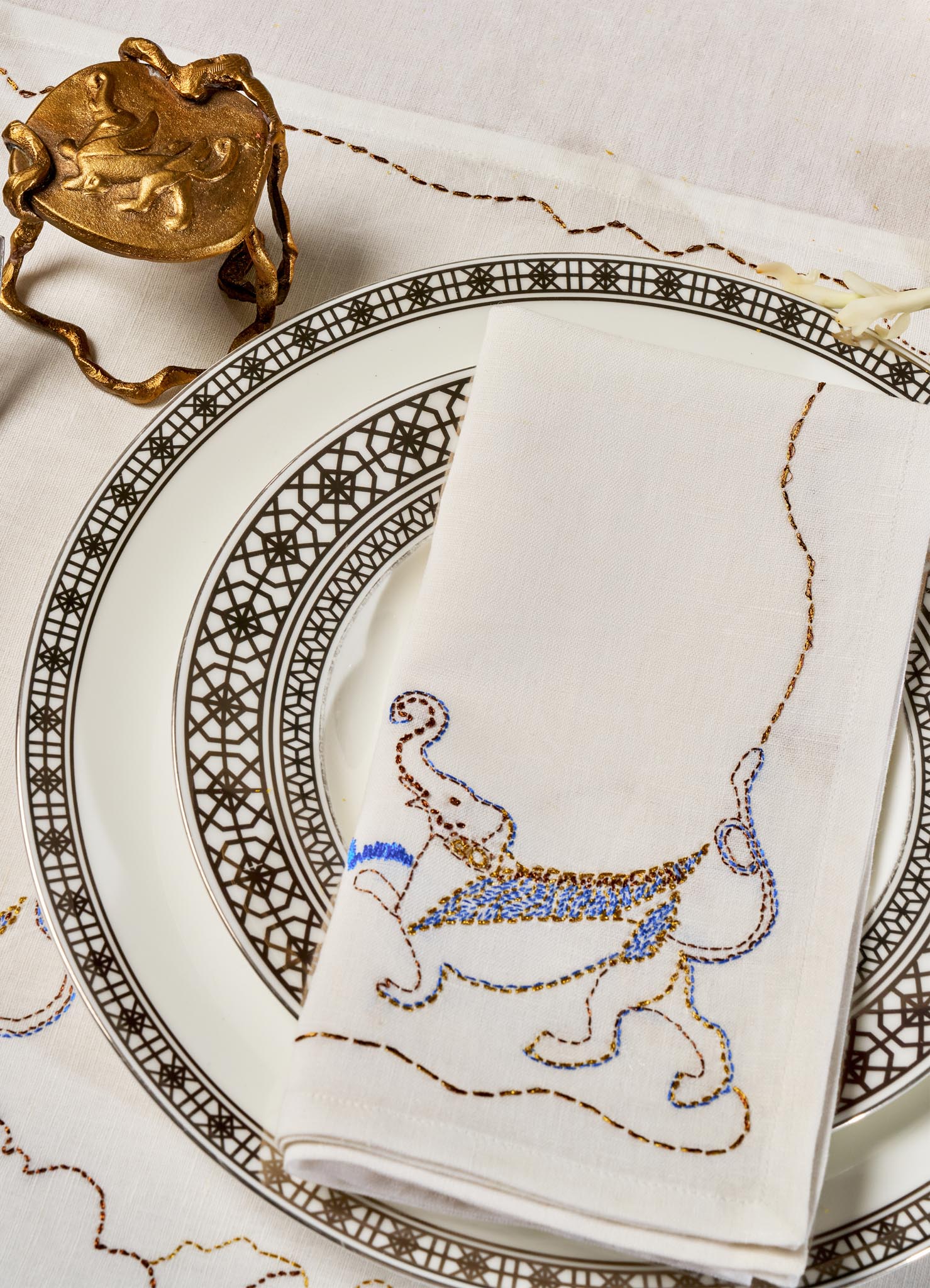 Hand embroidered napkin in cotton linen. Handmade in India.