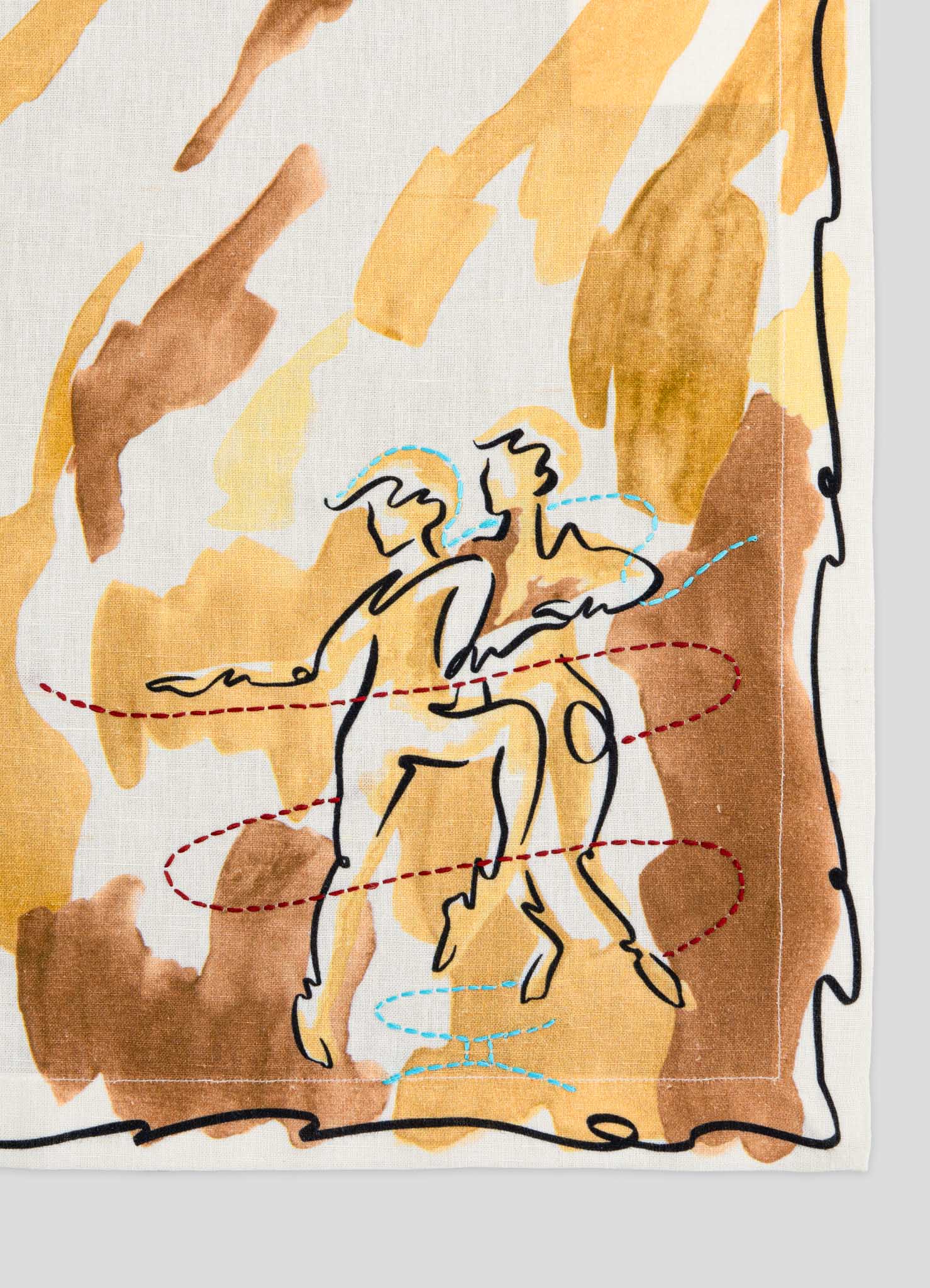 Bring the universe home, and see what’s written in the stars. These digitally printed and hand-embroidered zodiac emblems depict the ineffable mysticism of planetary movements, one which governs and dictates the lives of millions across India. Each textile features a colour corresponding to its zodiac sign, reflecting the deep fascination held for the cosmic energies influencing destinies. These pieces serve as a tangible link to the celestial forces and elicit the true nature within us all.