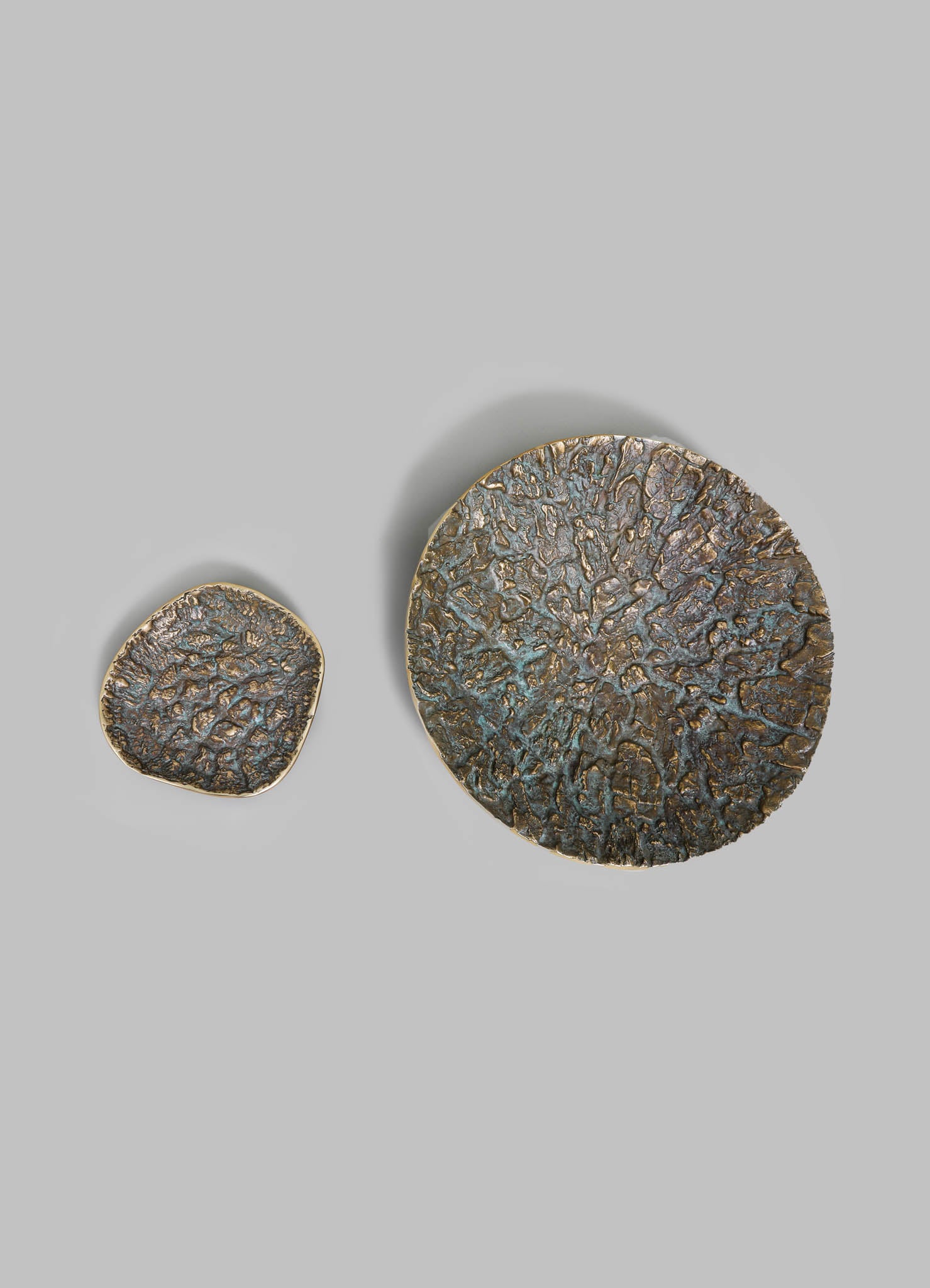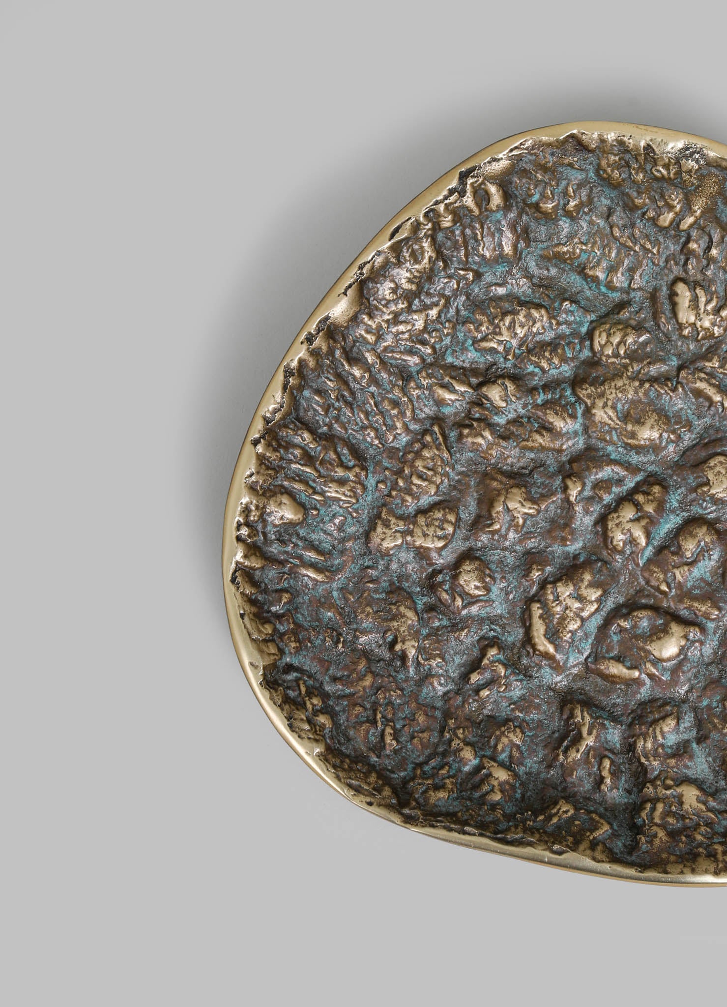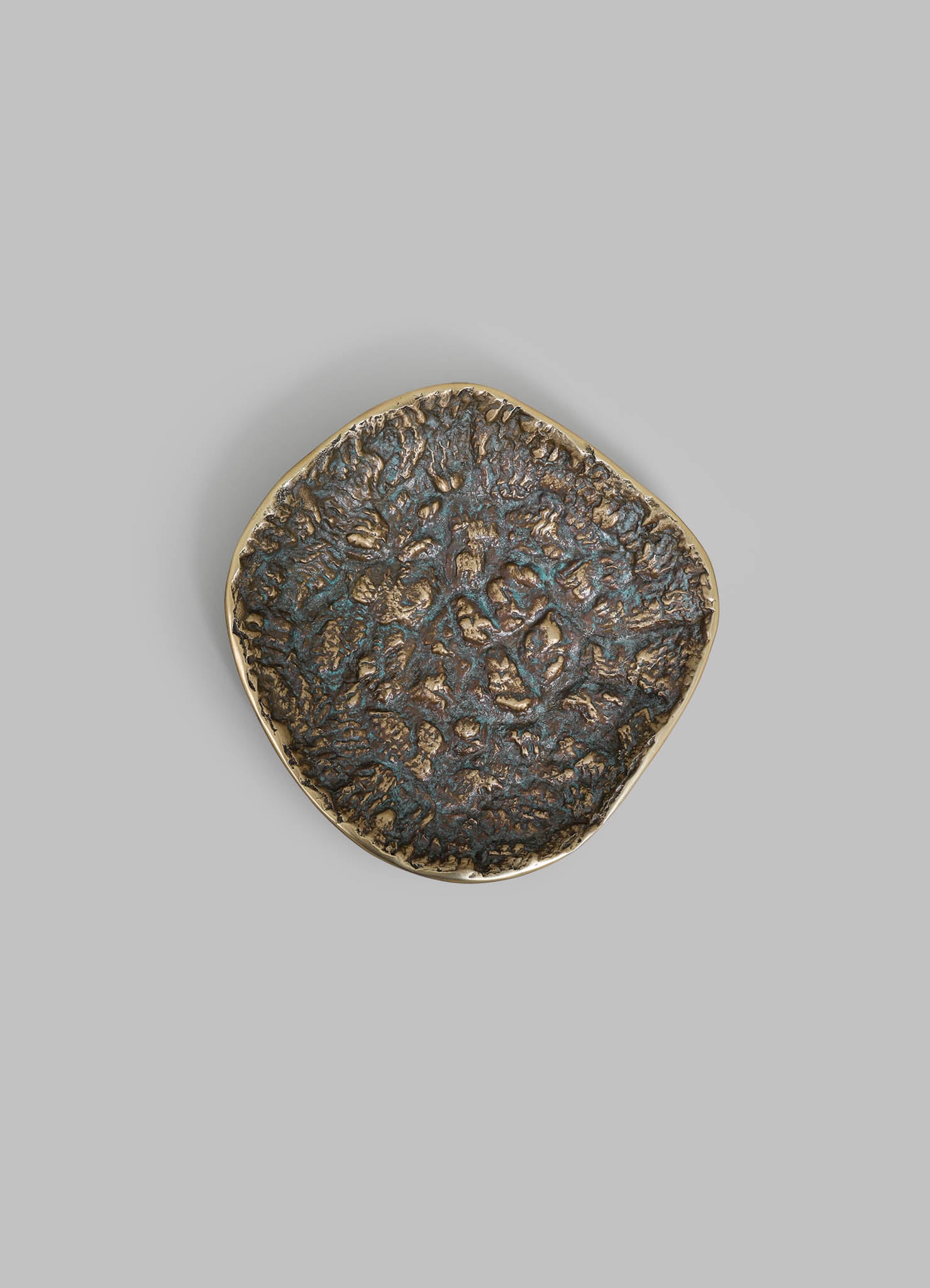 Inspired by the Rann of Kutch, a landscape where earth and sky converge in a dramatic interplay of textures, forms this collection of cast brass objects. Rich patinas, like the ever-changing canvas of the Rann, range from cool turquoise echoing salt flats under a clear sky to deep, earthy browns reminiscent of sun-baked, cracked earth.