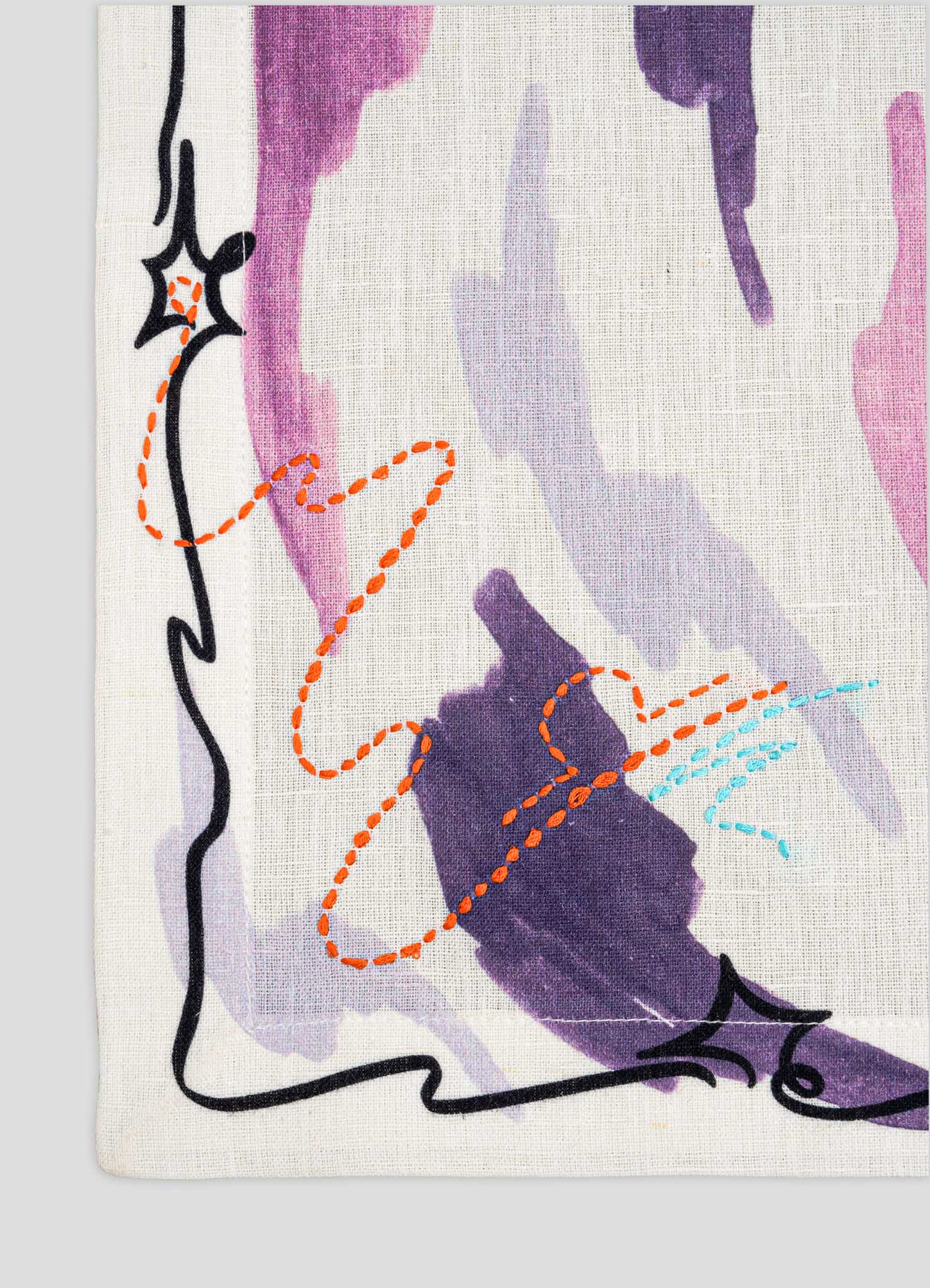 Printed & hand embroidered placemat in cotton linen. Handmade in India.