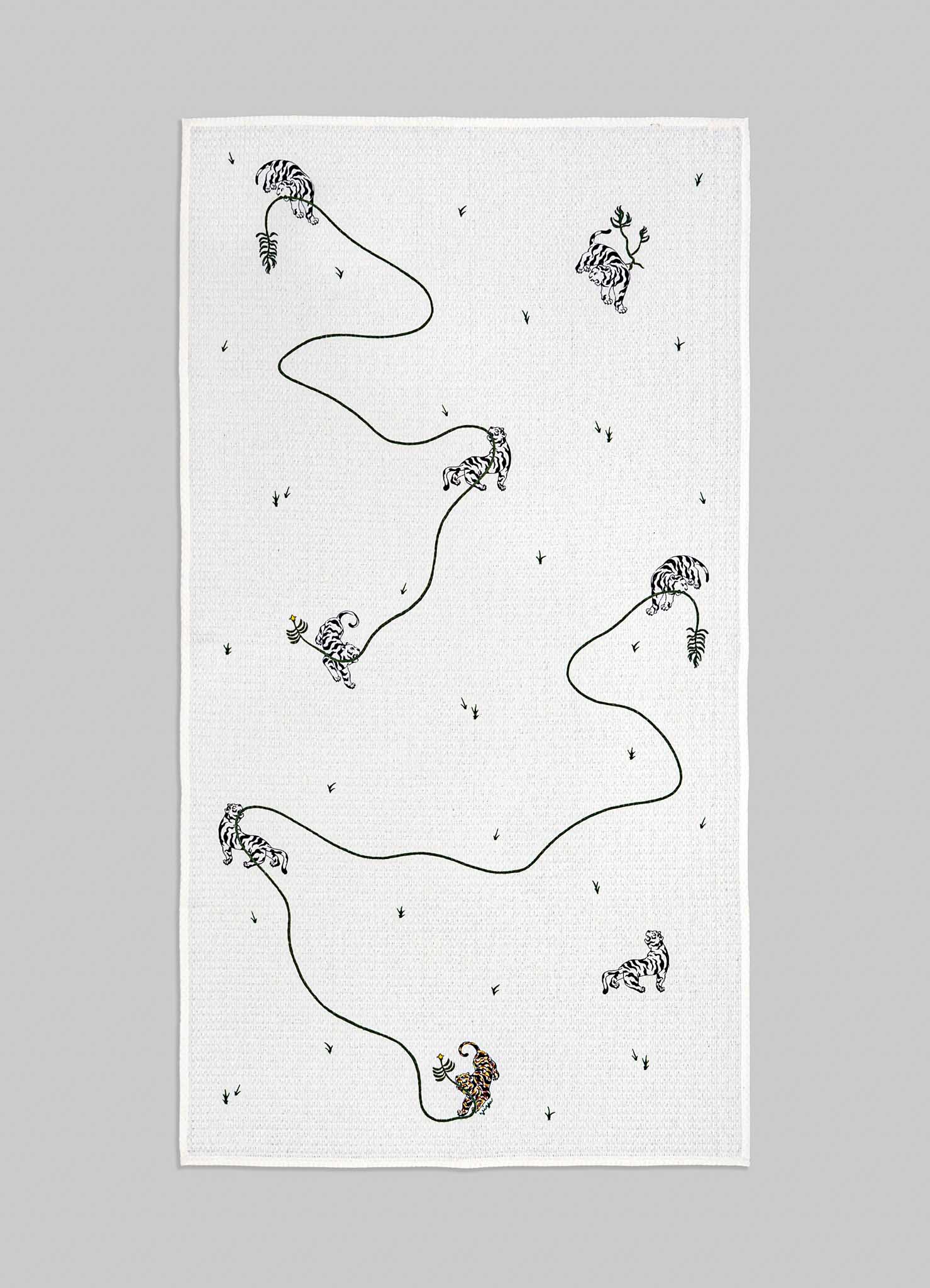 Step into our enchanting Indian menagerie, where the essence of the jungle intertwines harmoniously with the depths of human imagination. Behold a traversing elephant, a lounging Bengal tiger, a slithering cobra, and a majestic blackbuck, amidst a lurking crocodile swimming in a sea of silk. This collection draws inspiration from the profound symbolism shared between humans and animals in Indian culture, celebrating the enduring connection between mankind and the natural world.