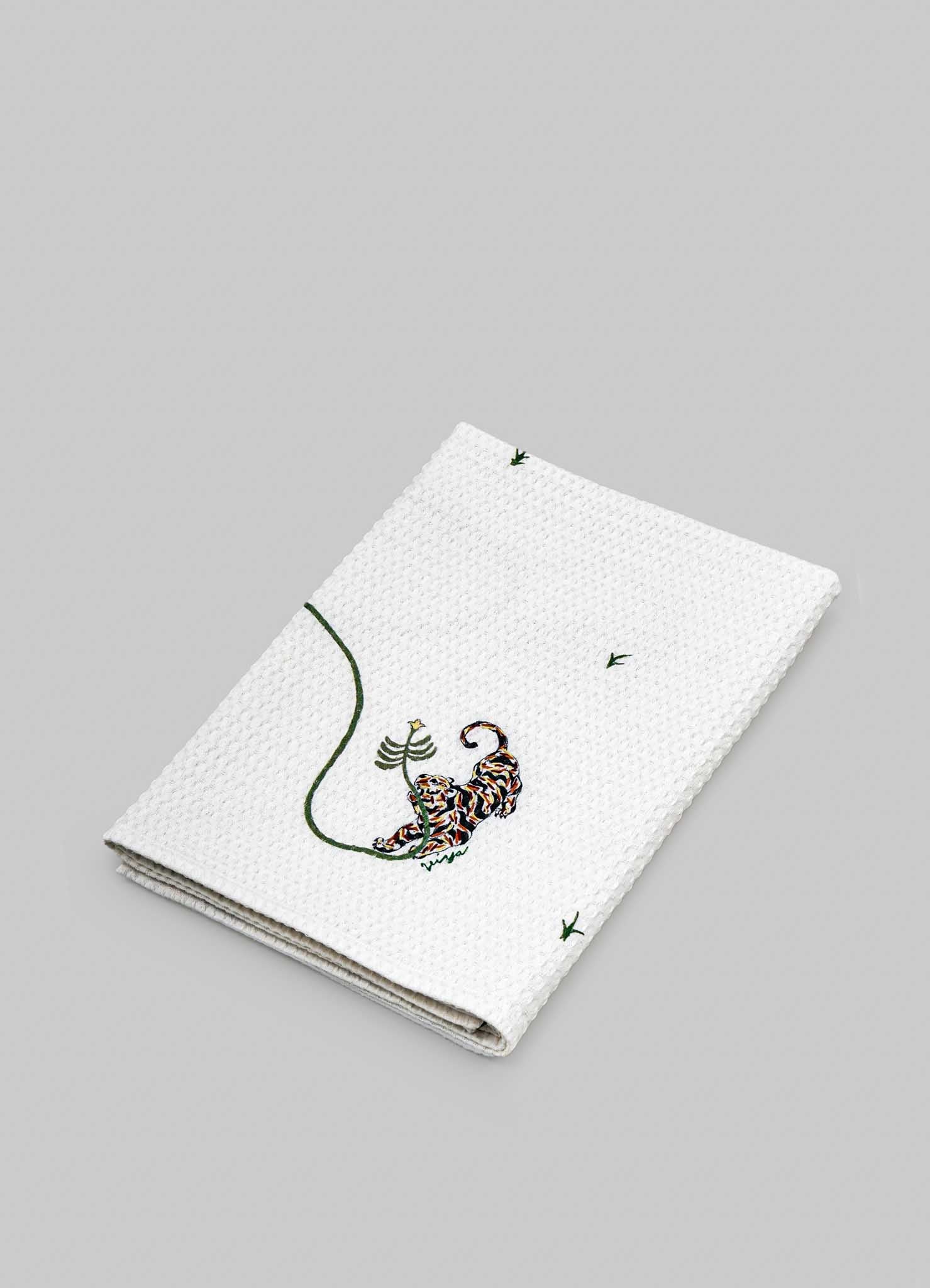 Printed & hand embroidered bath towel in cotton. Handmade in India.