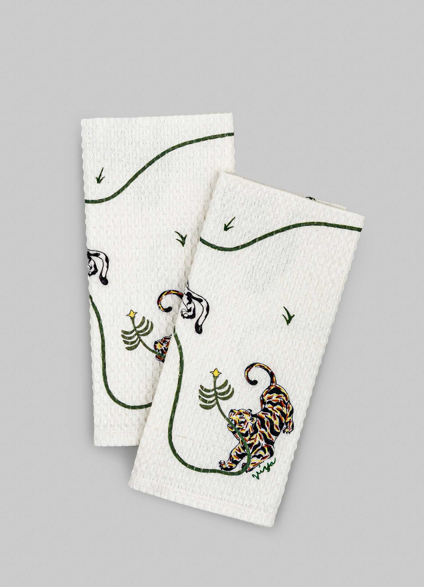 Lounging Tiger Hand Towels - Set of 2