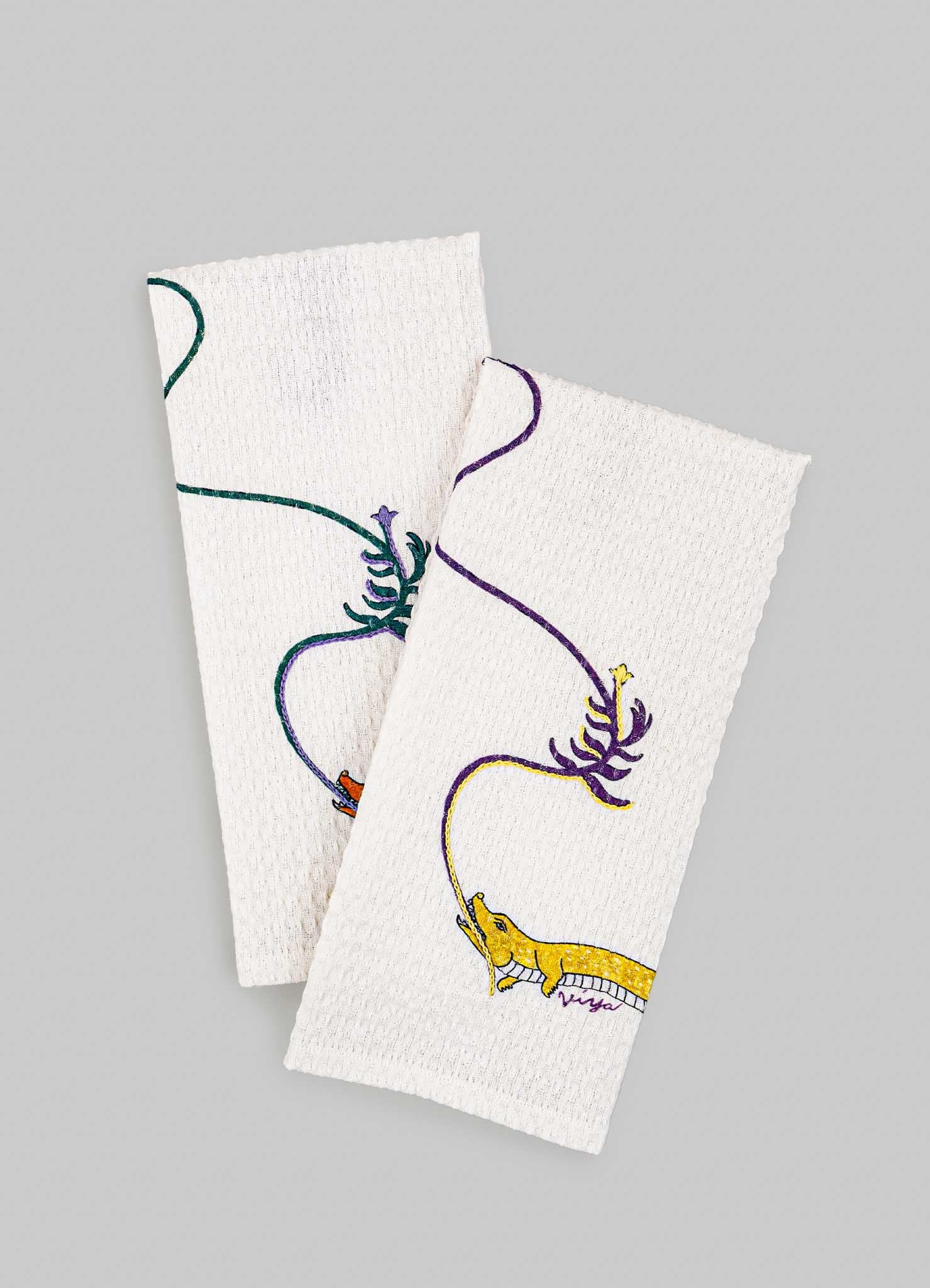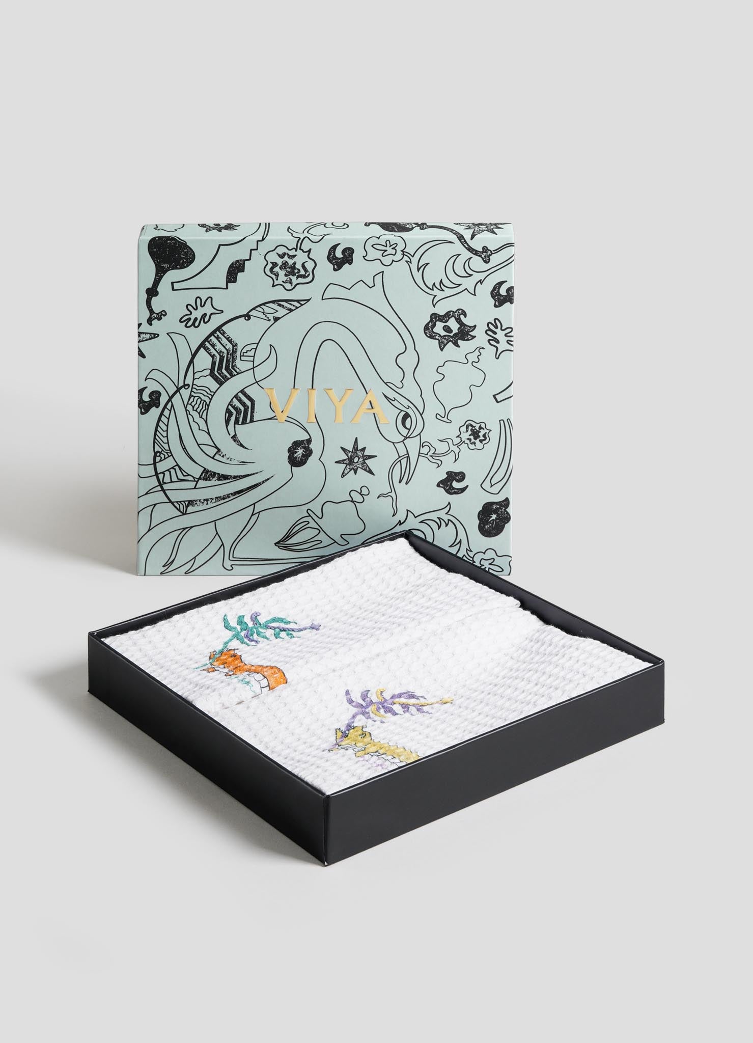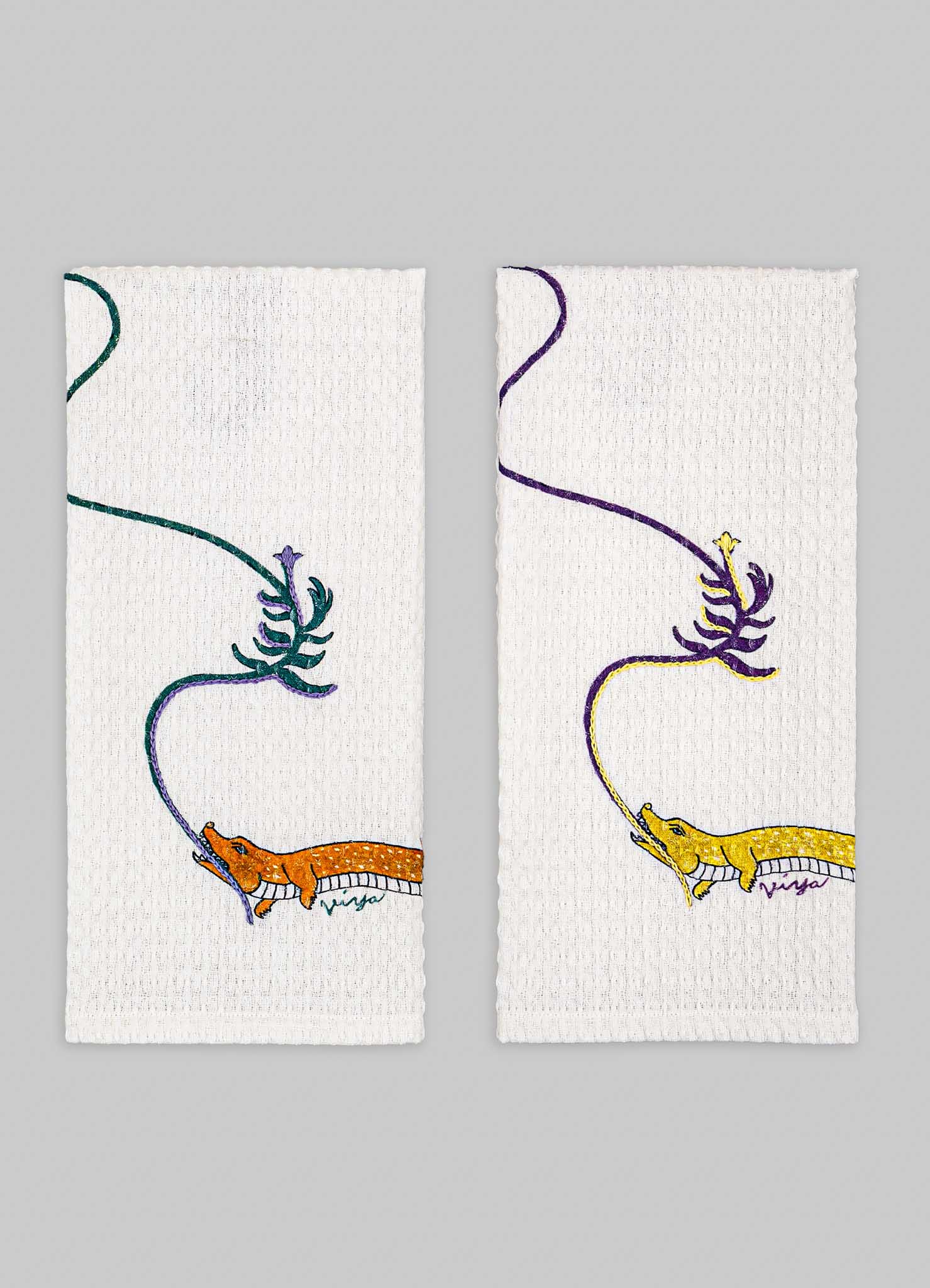 Printed & hand embroidered hand towels in cotton. Handmade in India.