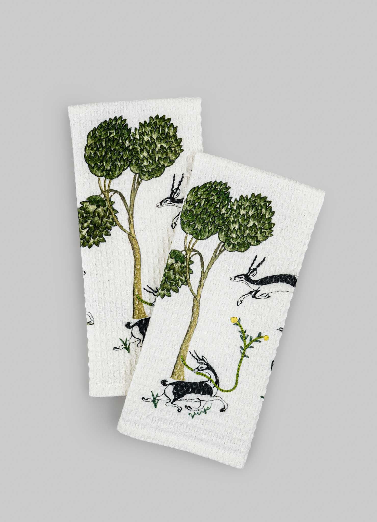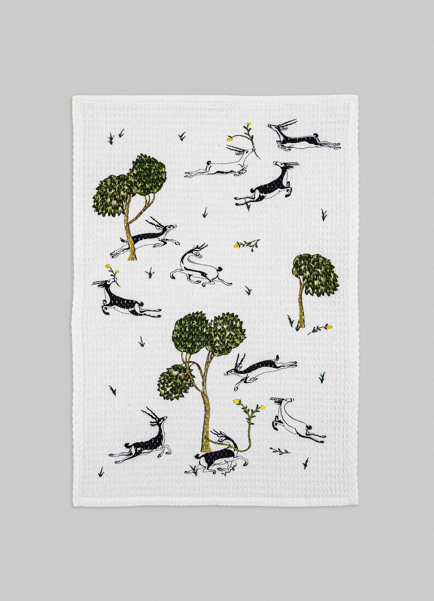 Printed & hand embroidered hand towels in cotton. Handmade in India.