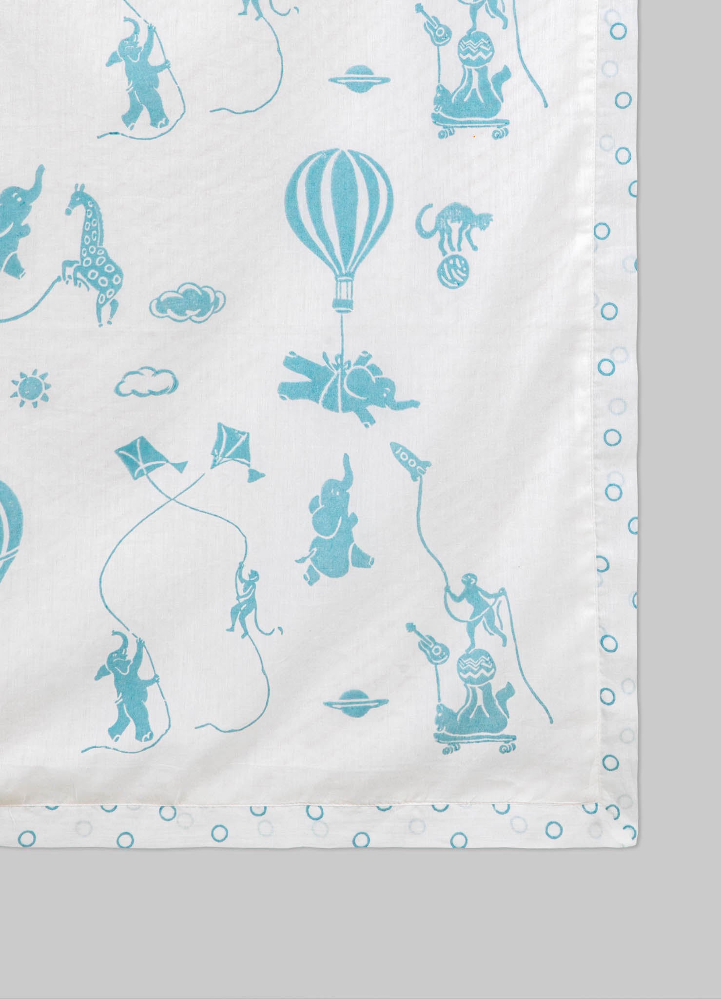 Come one, come all, the Mela awaits! These vibrant gatherings bring together people from all walks of life across India in a space of celebration, reverence, and a treat for the senses. This bespoke treasury for the young, imprinted on the finest cotton, is a tender caress akin to the gentlest of skin, beguiling hearts with the ballet of acrobats, soaring kites, creatures untamed, and whimsical play.