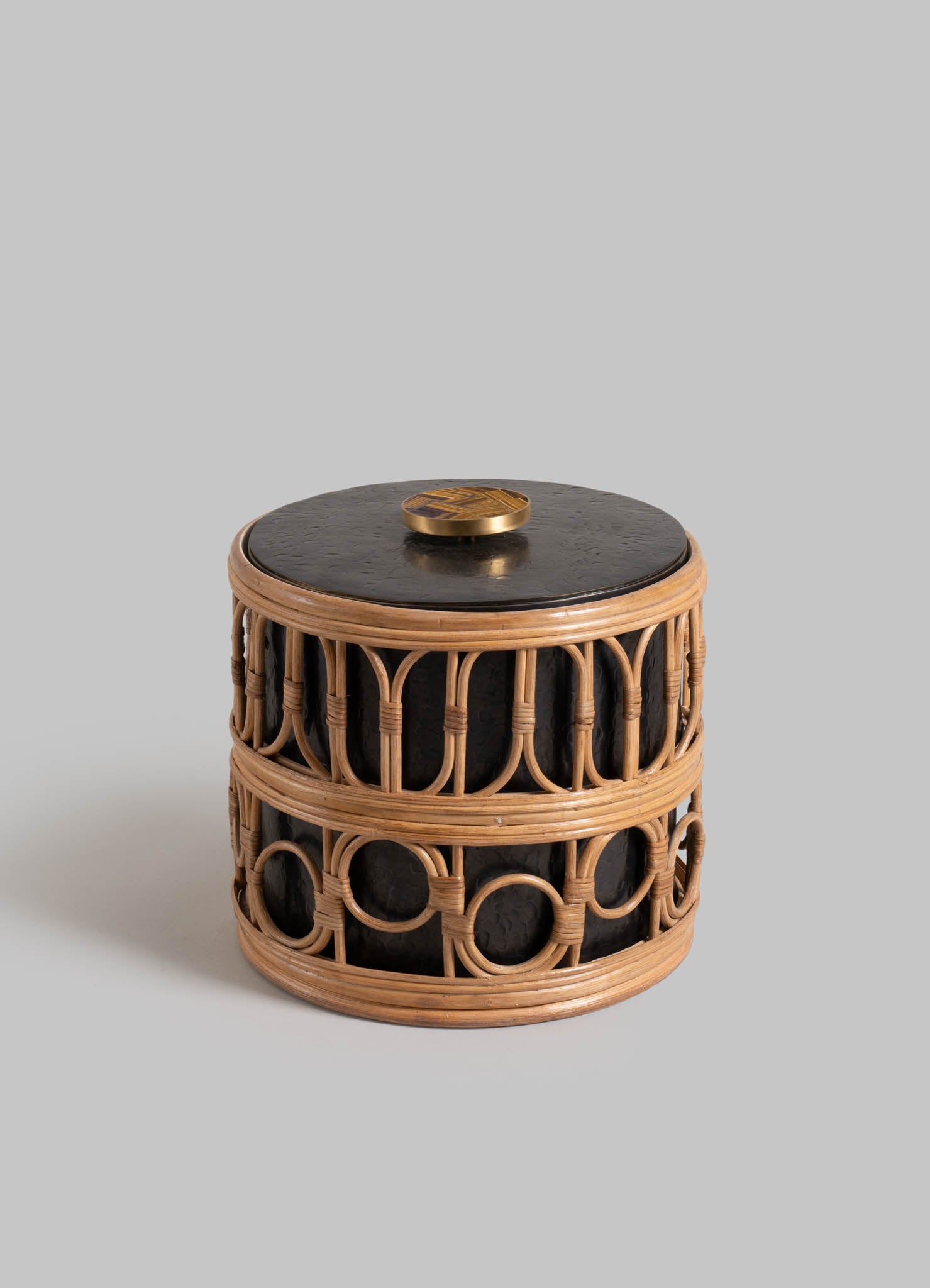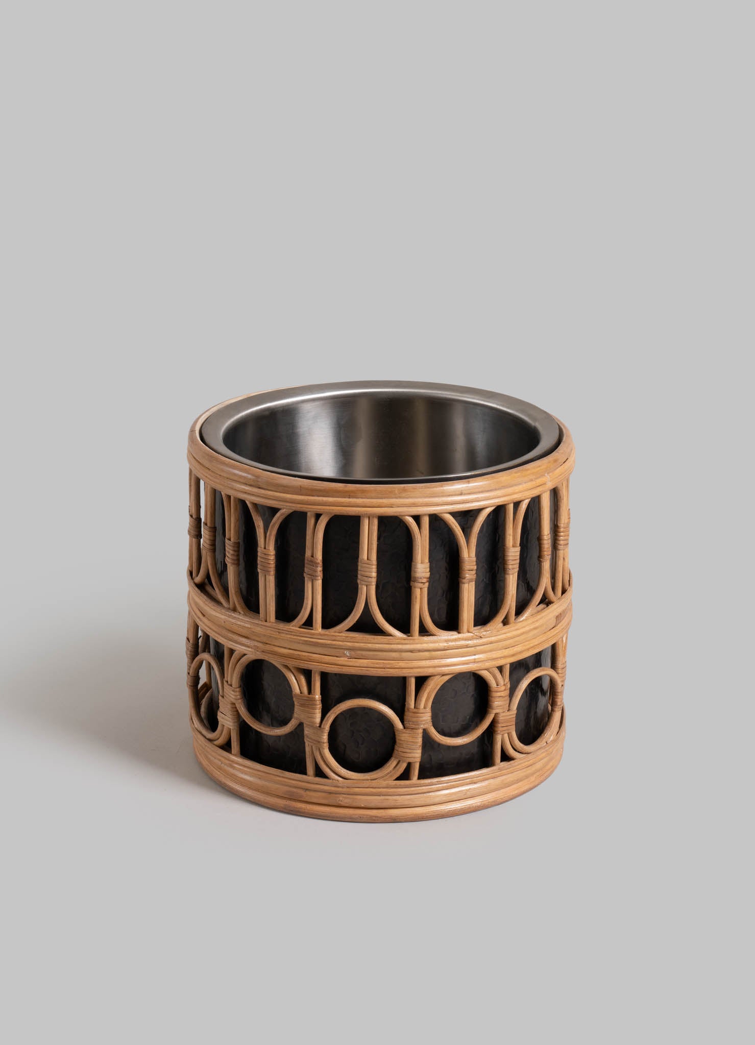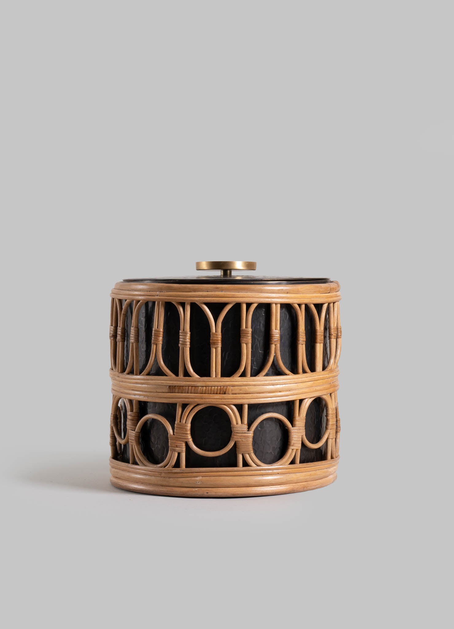 A classic pairing, reimagined. Robust cane becomes latticed second skin to the hand-beaten brass objects in an effortless collaboration. These barware accessories are crafted as perfect accompaniments to your bar or serve as versatile standalone objects for your home.