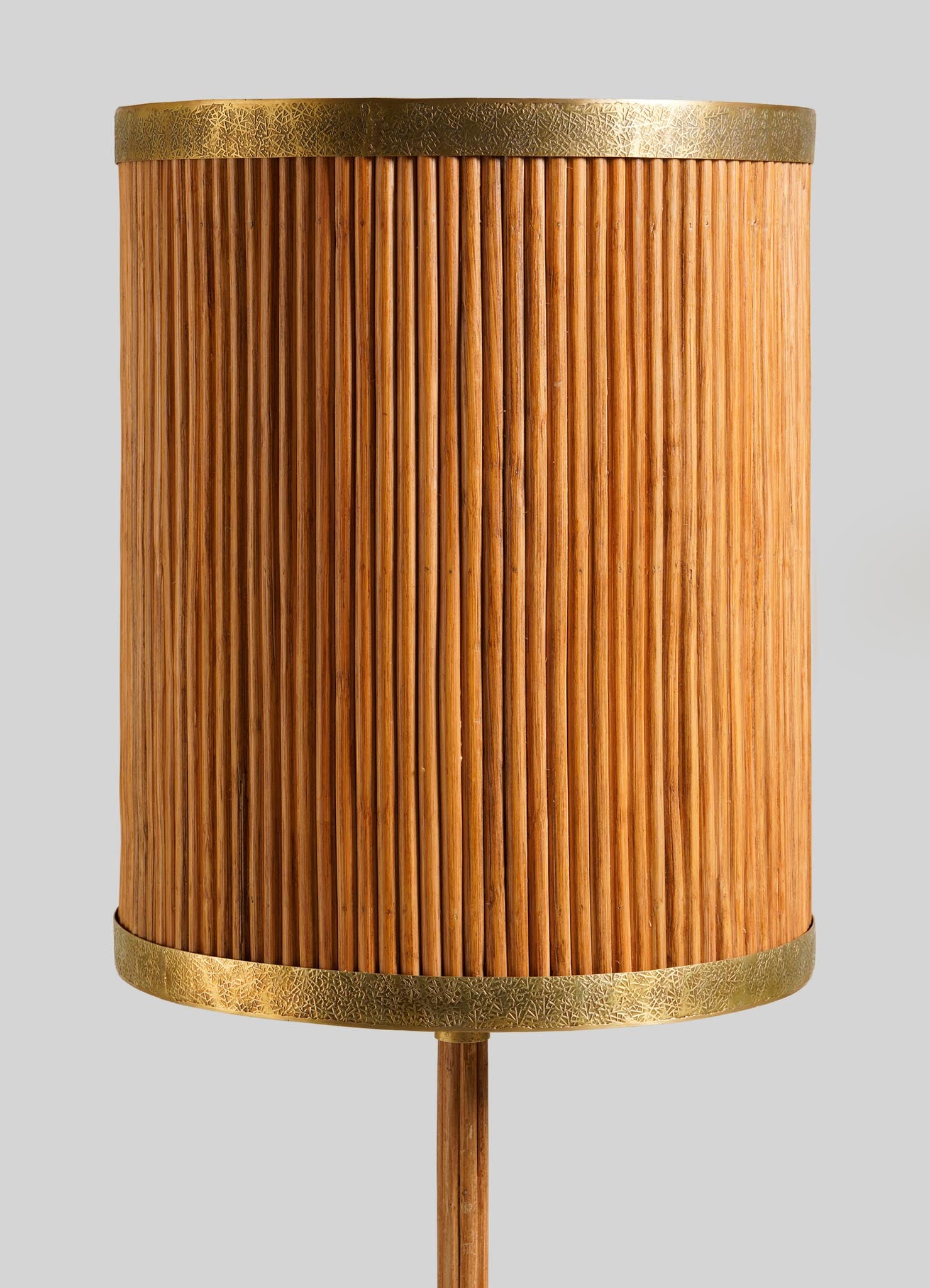 Table lamp in brass with handwoven cane lamp shade. Handmade in India.