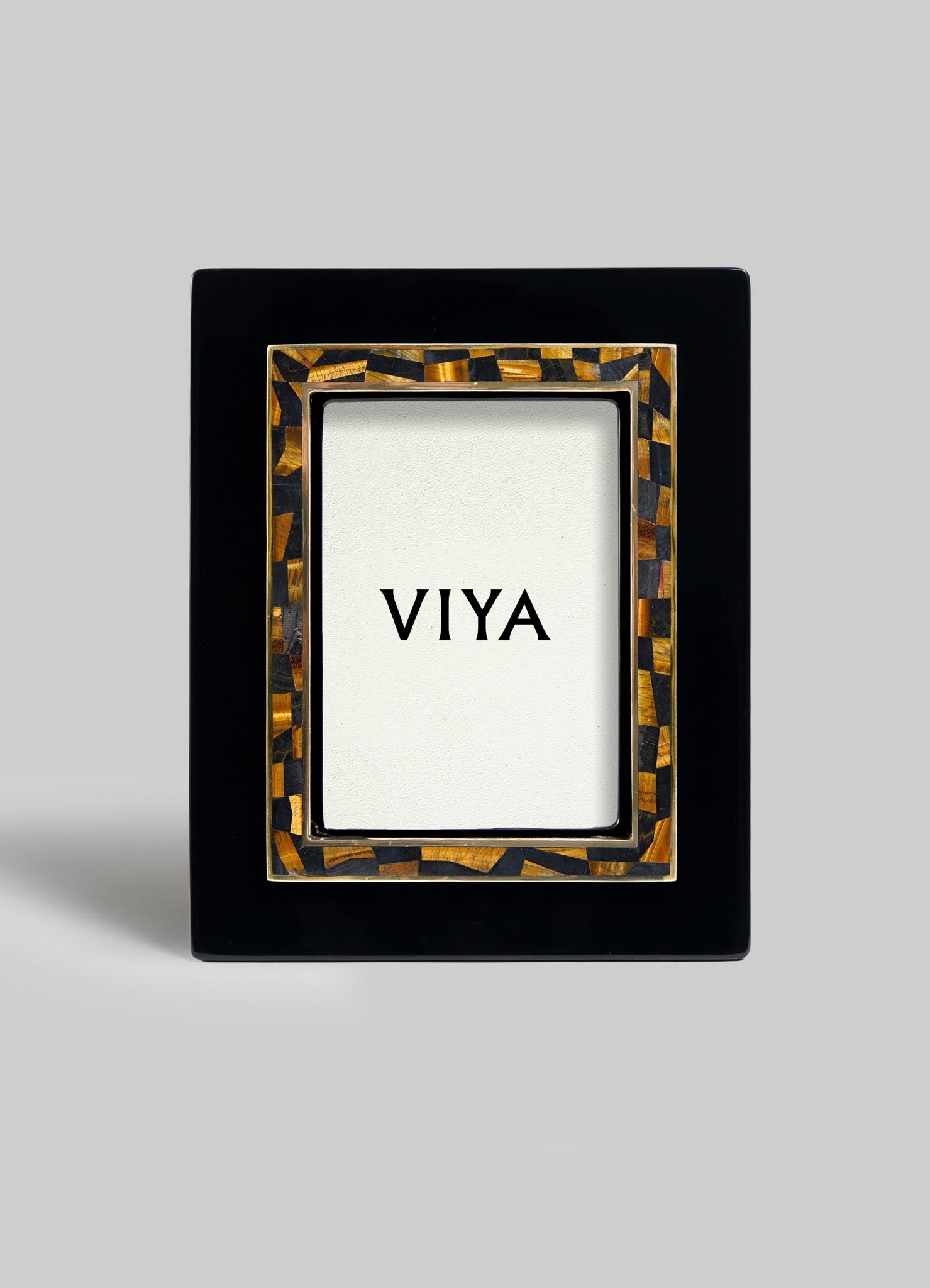 Photo frame in lacquered wood with semi precious inserts. Handmade in India.