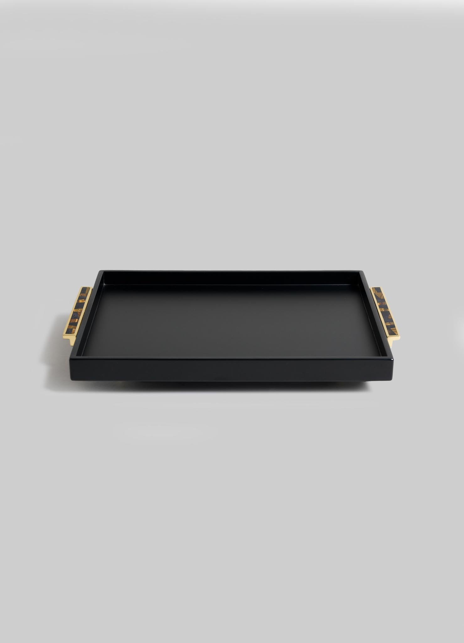 Towel tray in lacquered wood with semi precious inserts. Handmade in India.