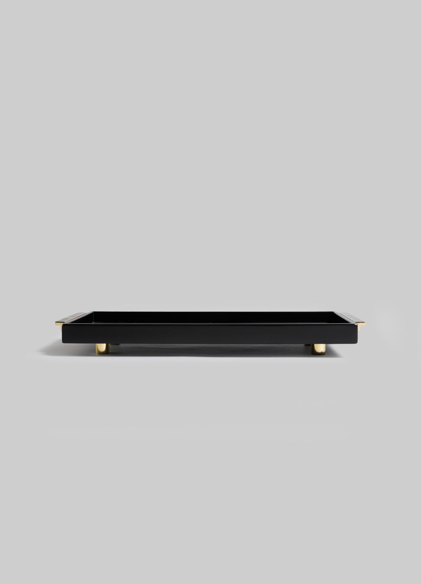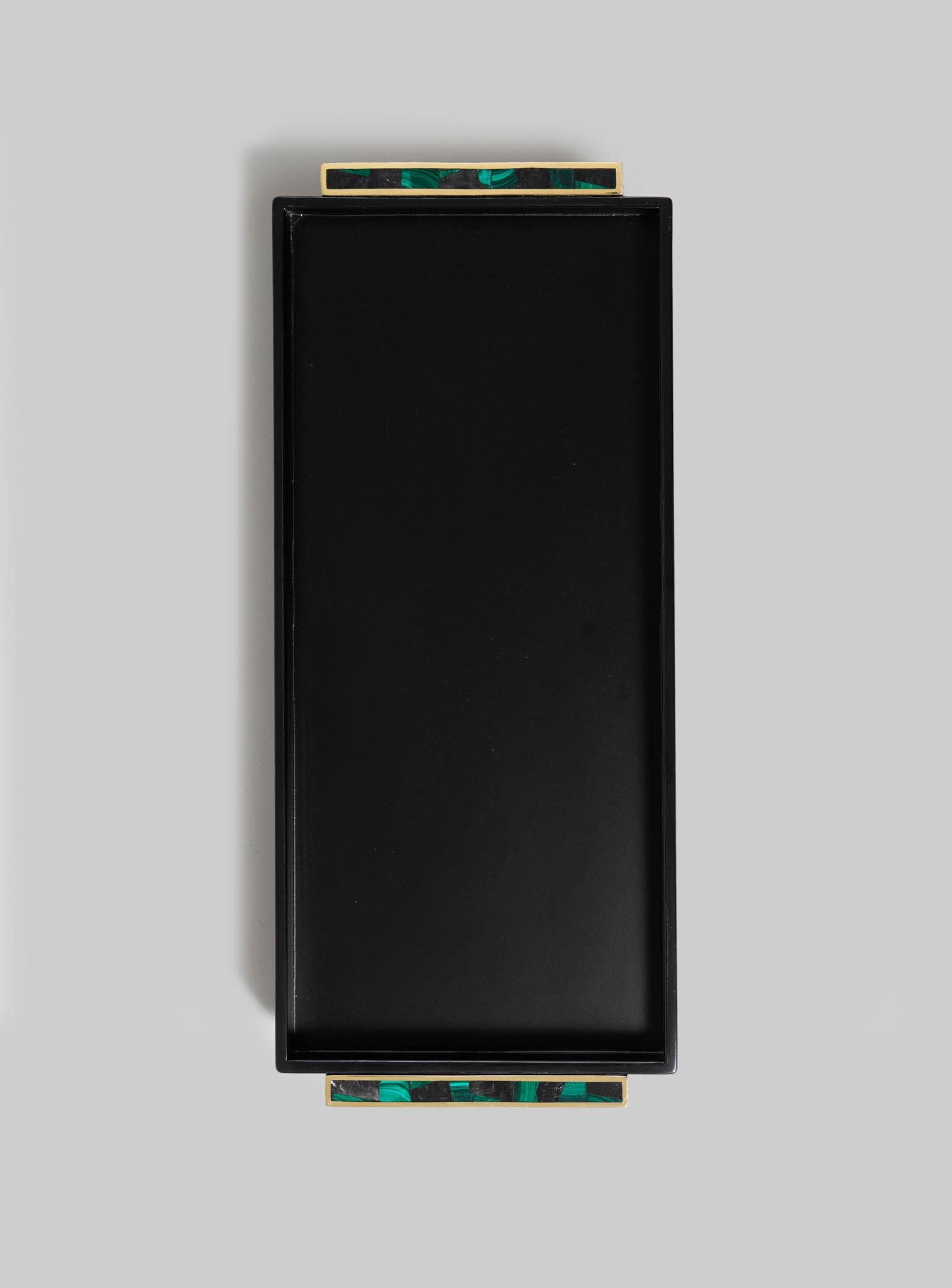 Lacquered vanity tray with brass & semi precious inserts. Handmade in India.