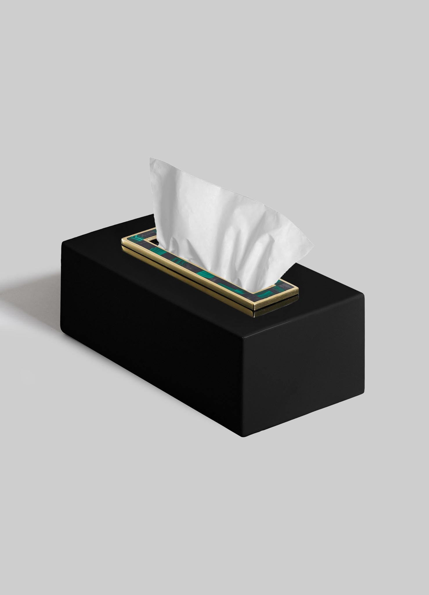 Tissue box in lacquered wood with semi precious inserts. Handmade in India.