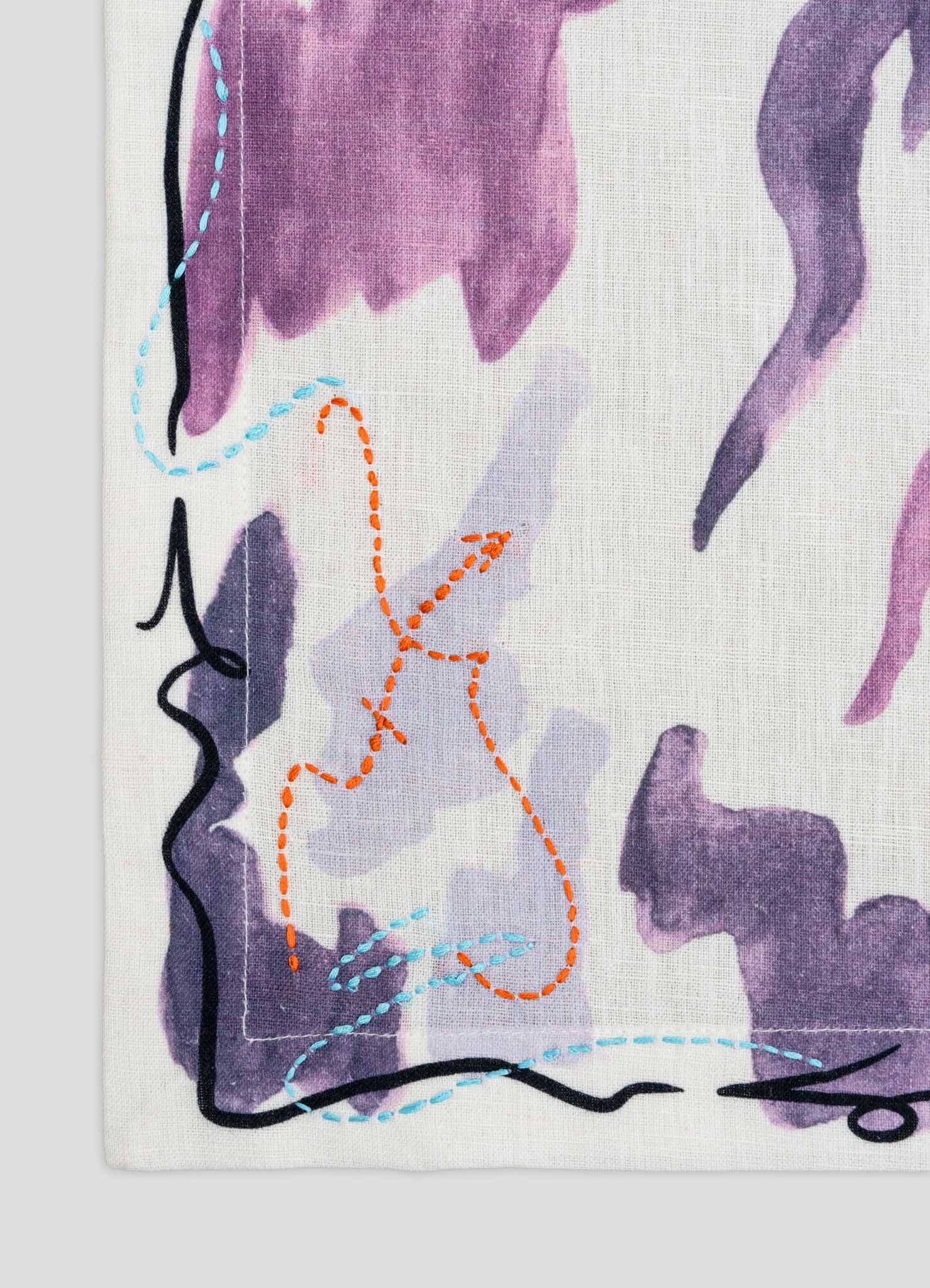 Printed & hand embroidered placemat in cotton linen. Handmade in India.