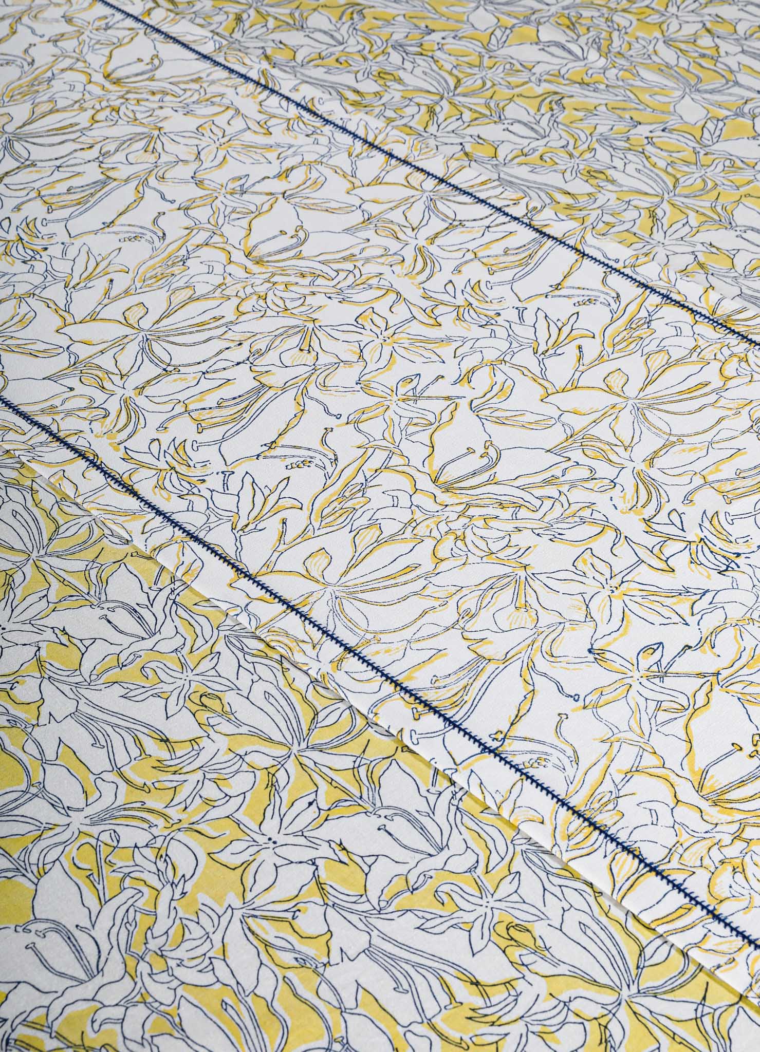 Boundless, vibrant, and handblocked into existence, an Indian garden is summoned to the table. Here, the invited guests release singular scents of jasmine, lilac, and lotus flowers. Together they mingle and meditate, creating a bouquet like none other.