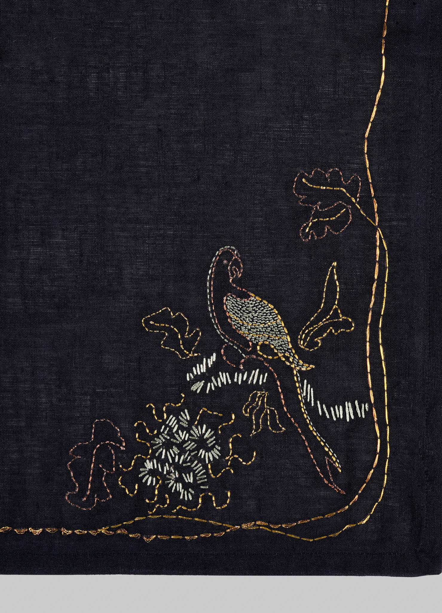 Tree Full of Parrots Hand Embroidered Black & Gold Napkin