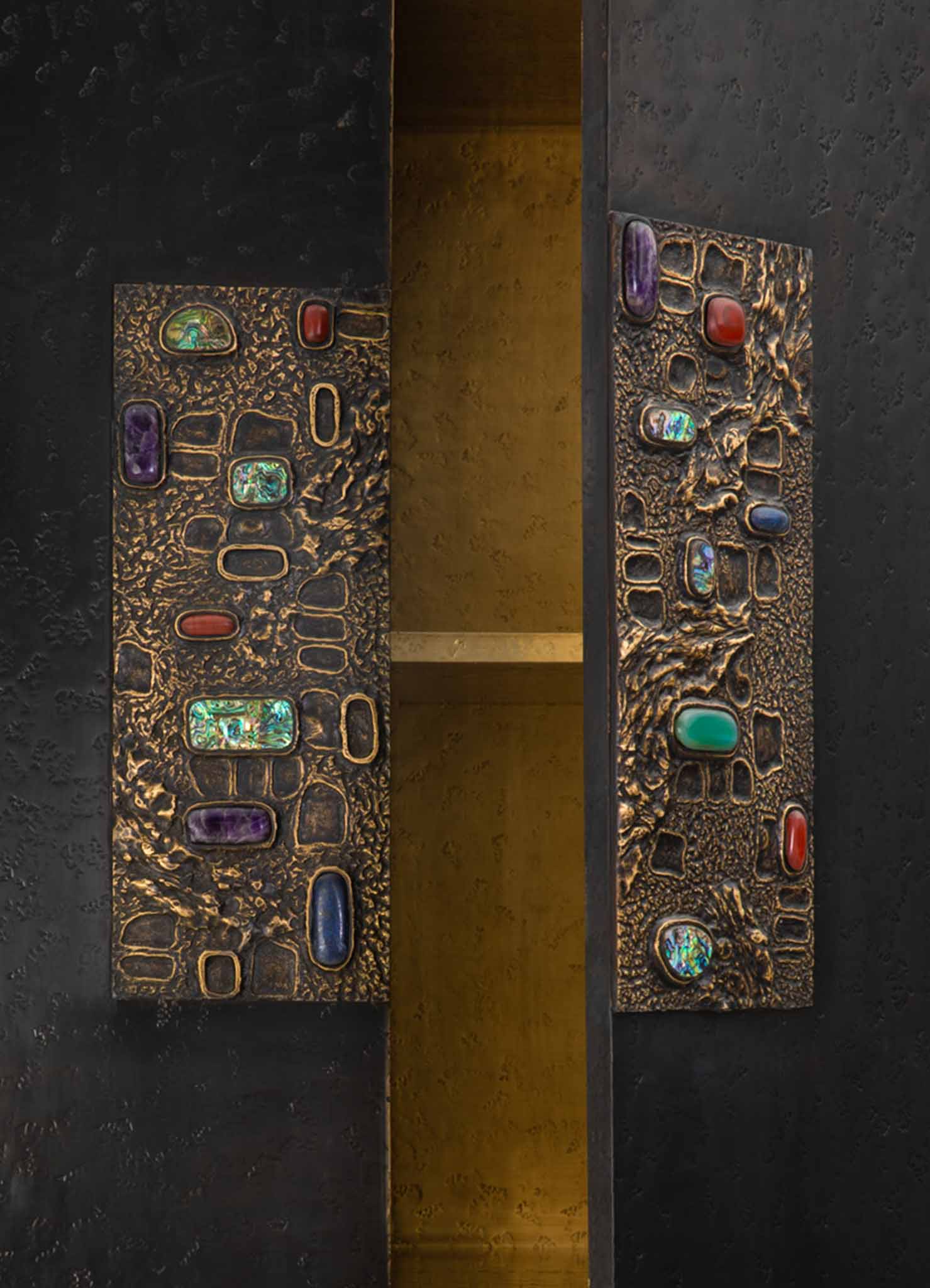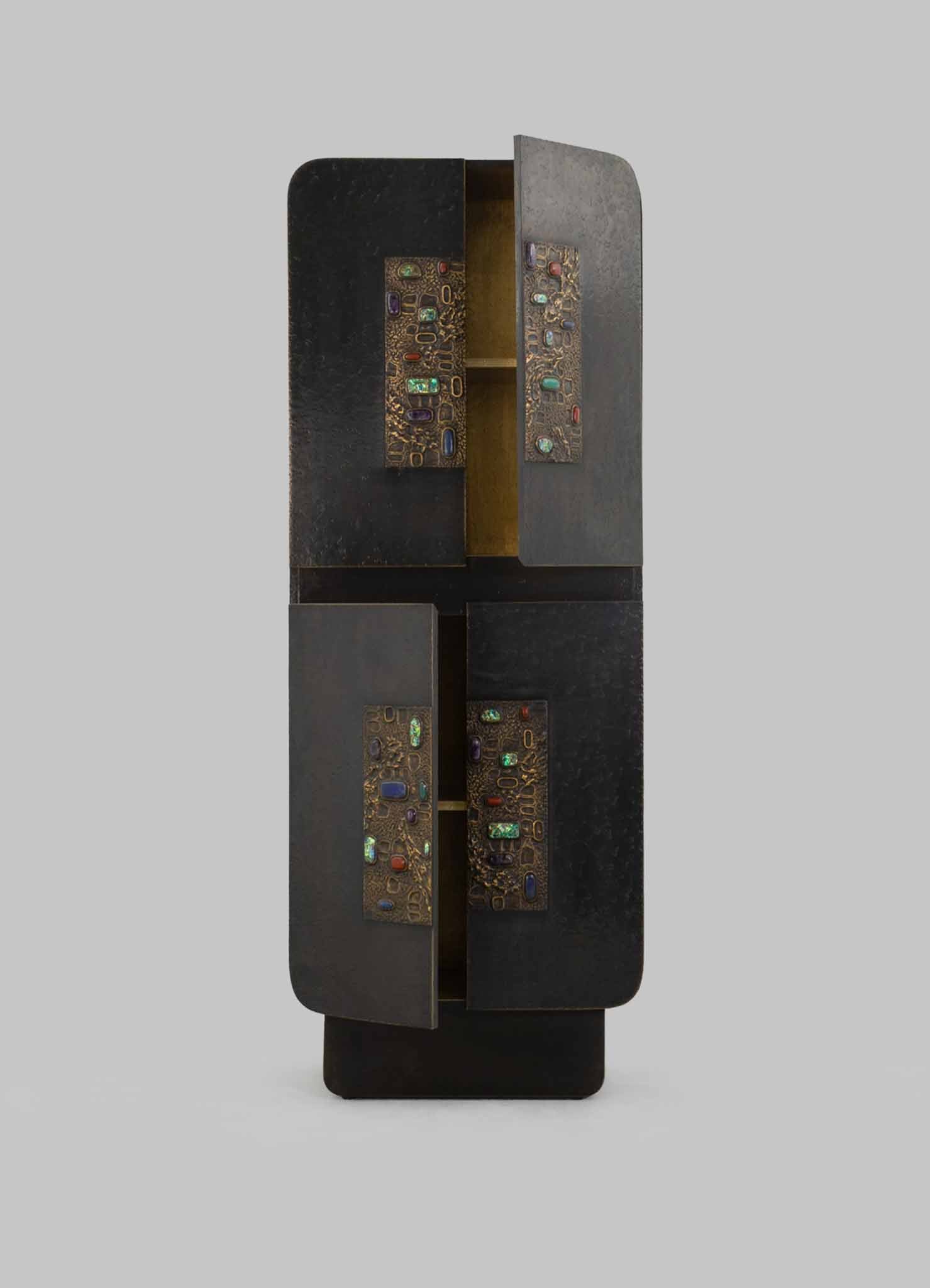 Cabinet in brass with semi precious inserts. Handmade in India.