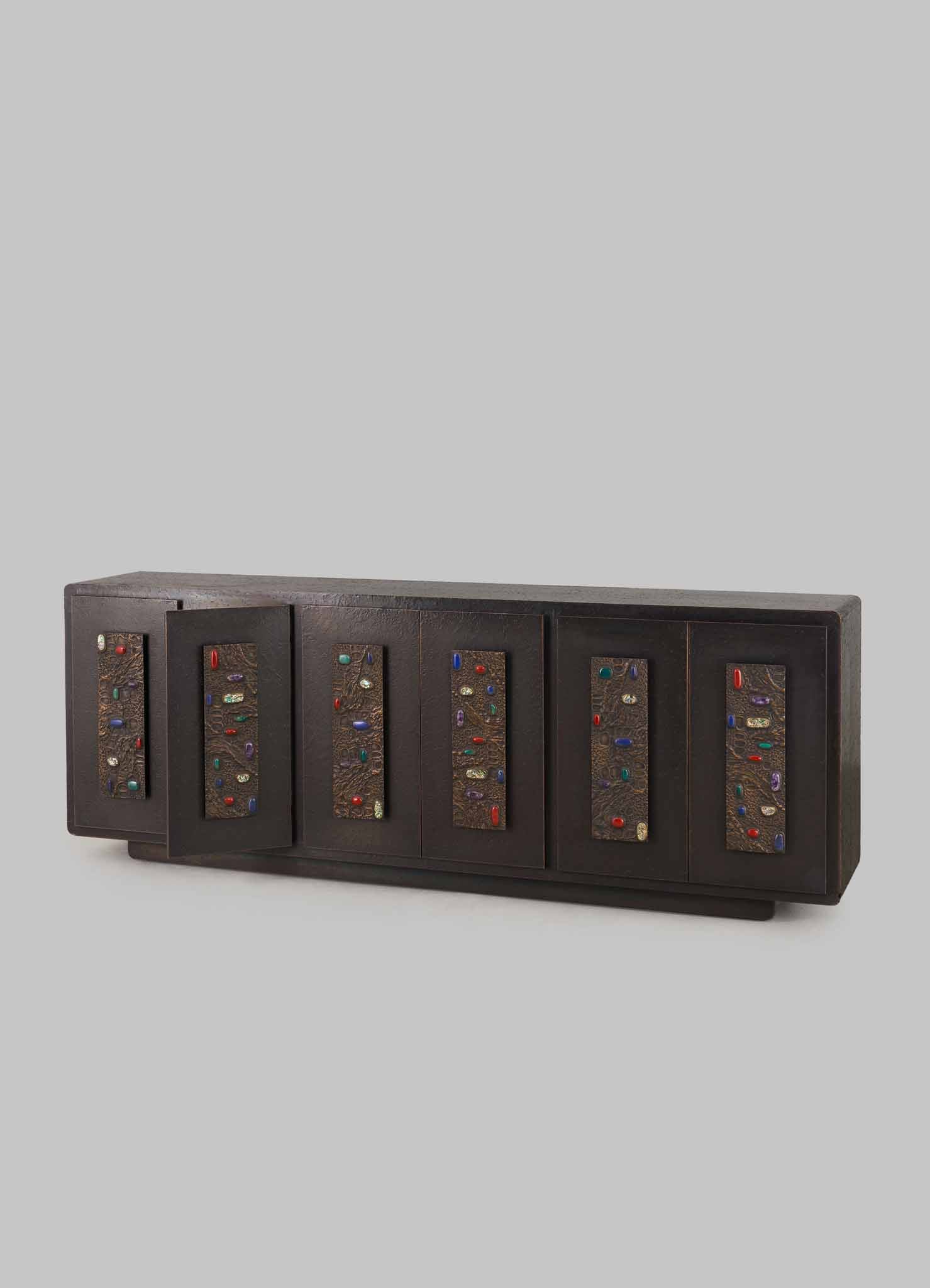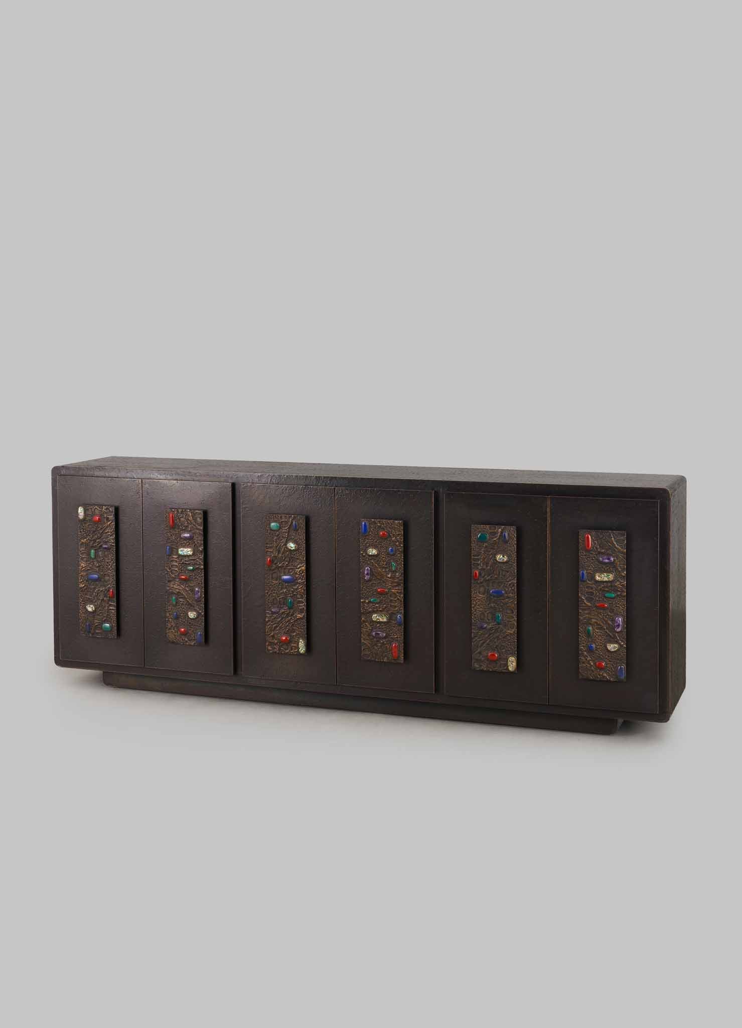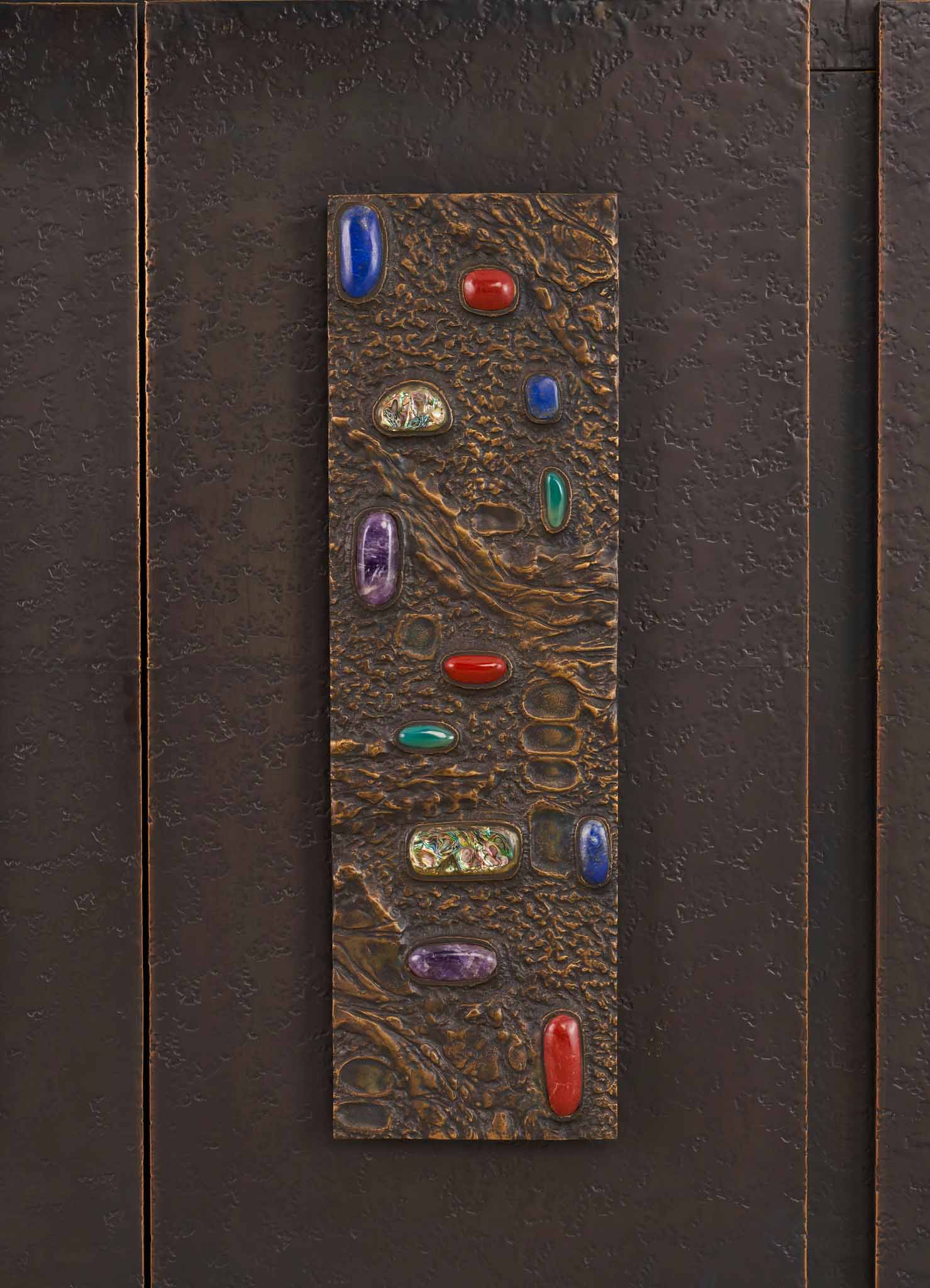 Cabinet in brass with semi precious inserts. Handmade in India.