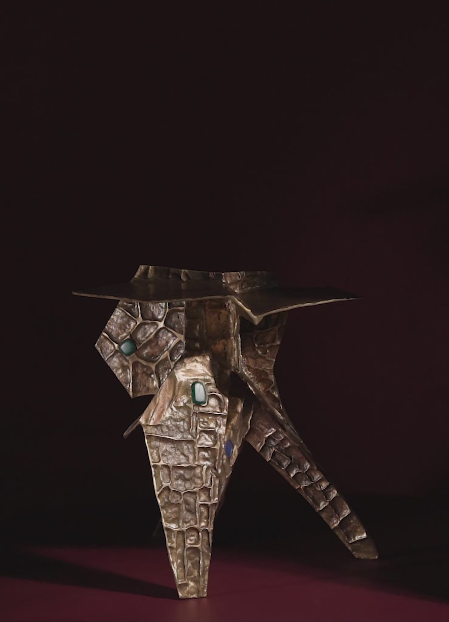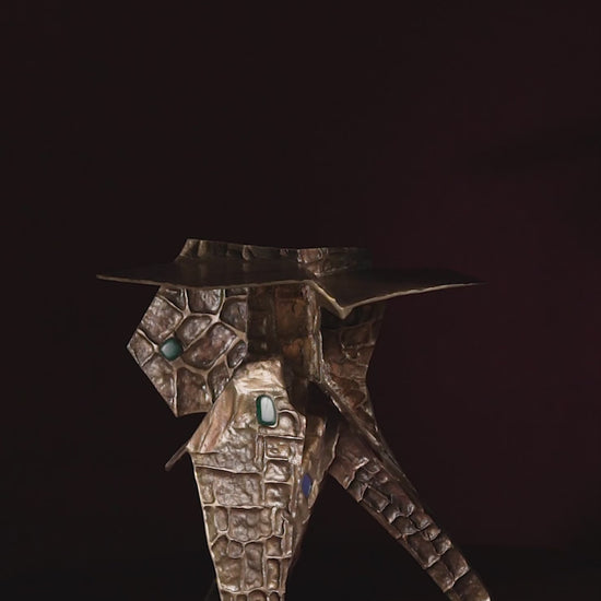 Side Table in brass with semi precious inserts. Handmade in India.