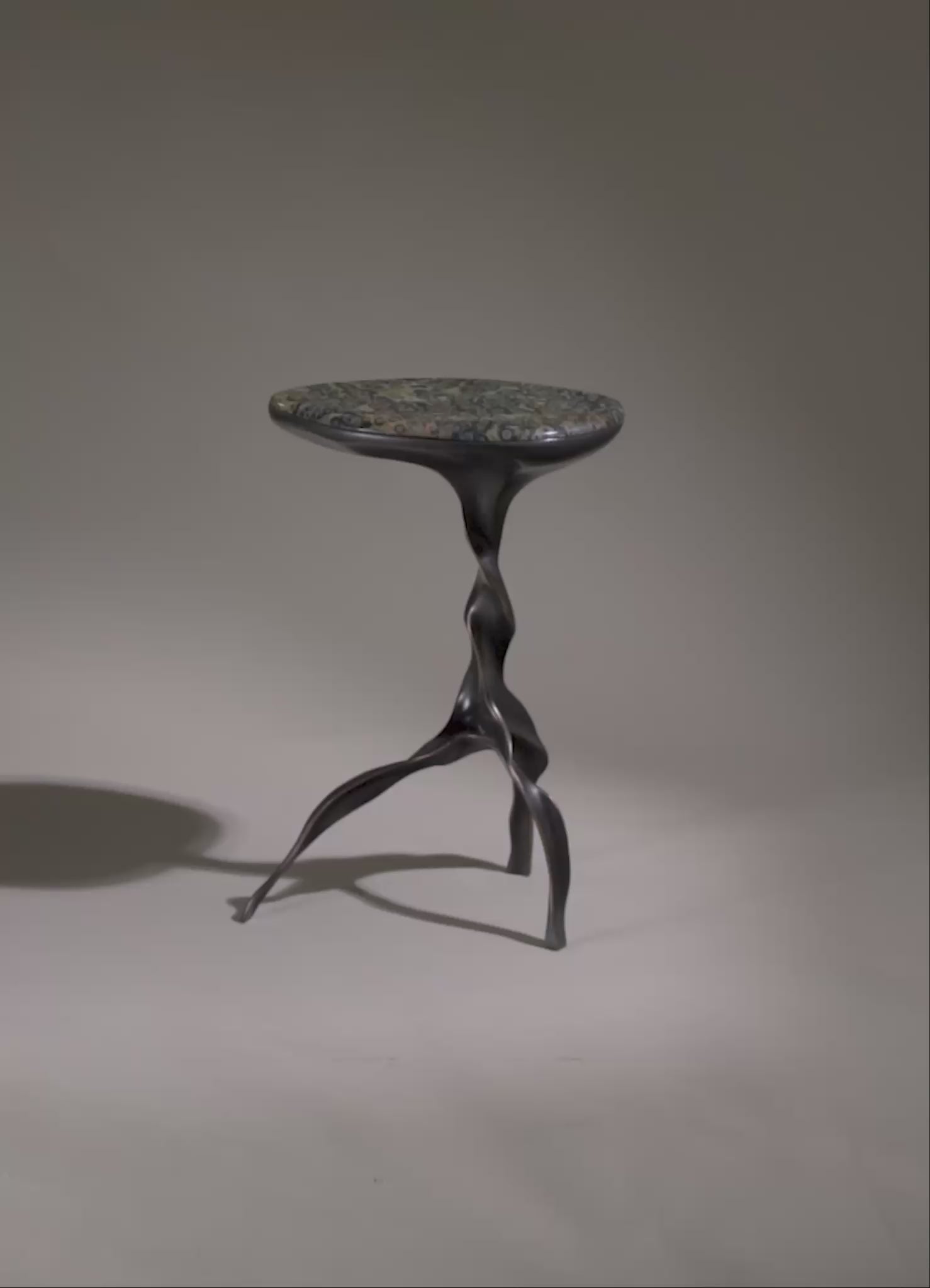 Side Table in brass with semi precious overlay top. Handmade in India.